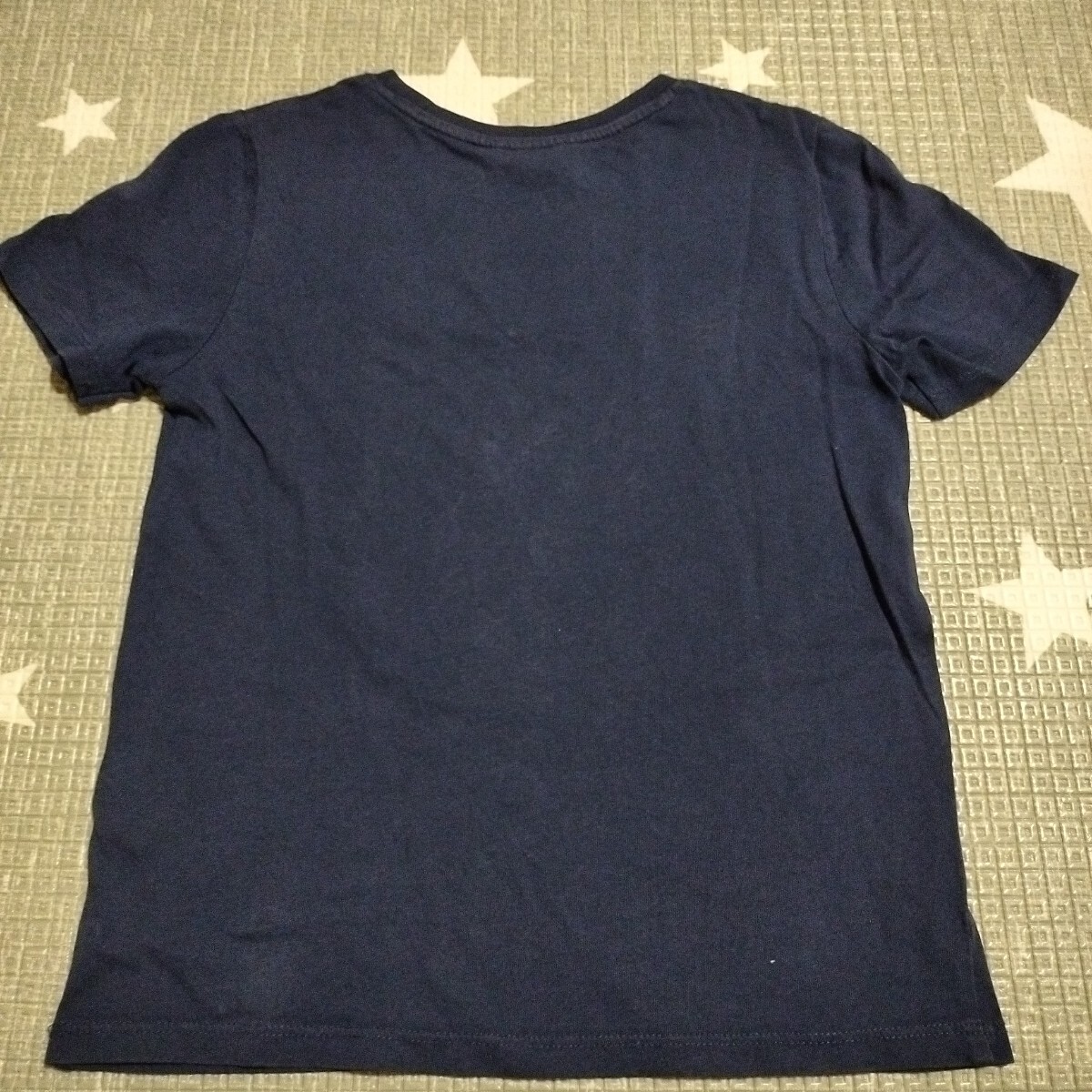 プリントのかすれや、写真にあるようにシミもついておりますが、まだまだ着用できると思います。