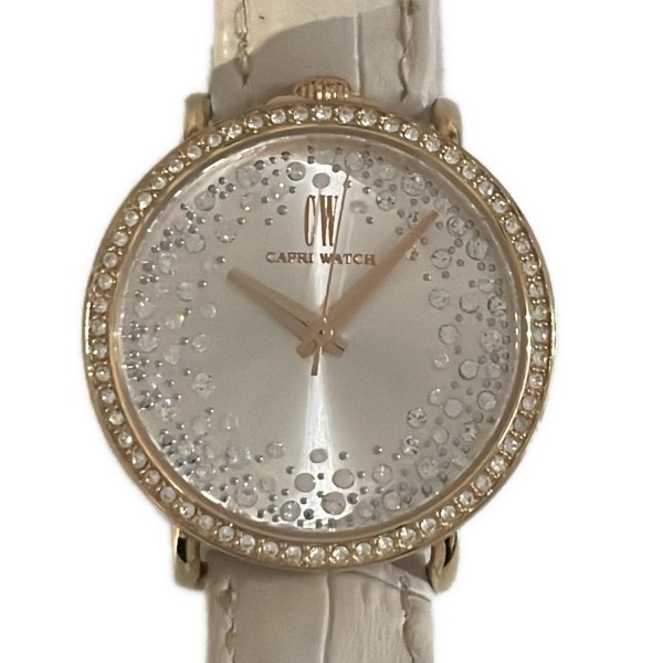CAPRI WATCH(カプリウォッチ) 腕時計■美品 - 316L レディース 革ベルト/ラインストーン/ラインストーンベゼル ゴールド