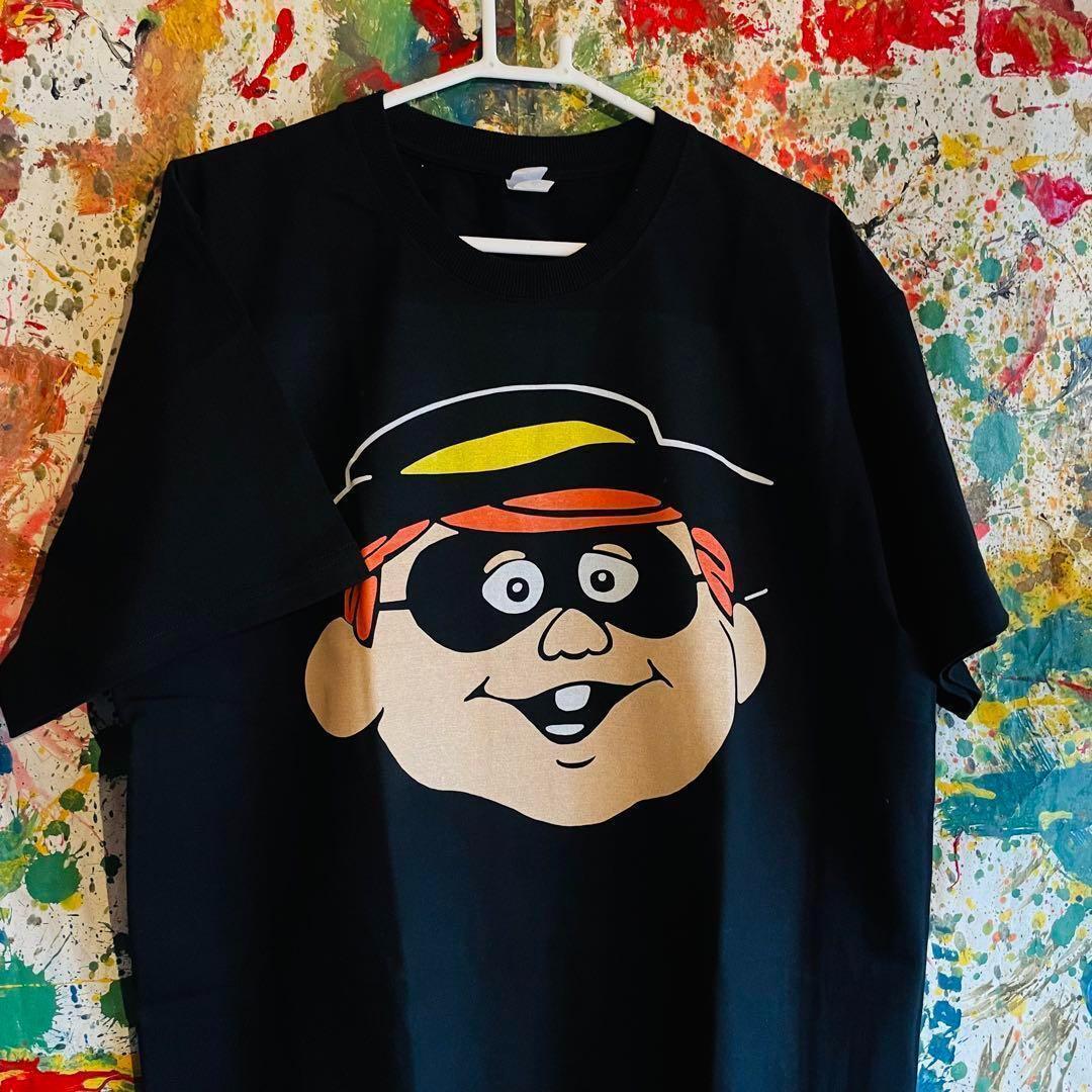 白と黒のしましまの服に黒の仮面をかぶったハンバーグラーは昔、ハンバーガーを盗む悪者という設定で、1971年に登場した当初は痩せこけたお爺さんの姿でした。悪事を働き、ドナルドにお仕置きをされたあと、ハンバーガーをもらって仲直りしたという説があります。
