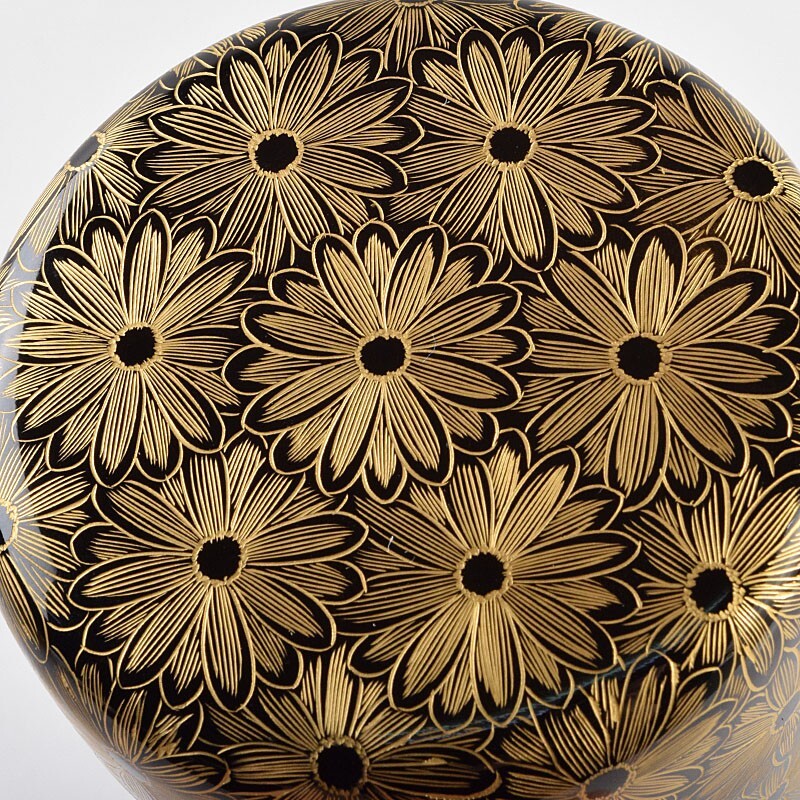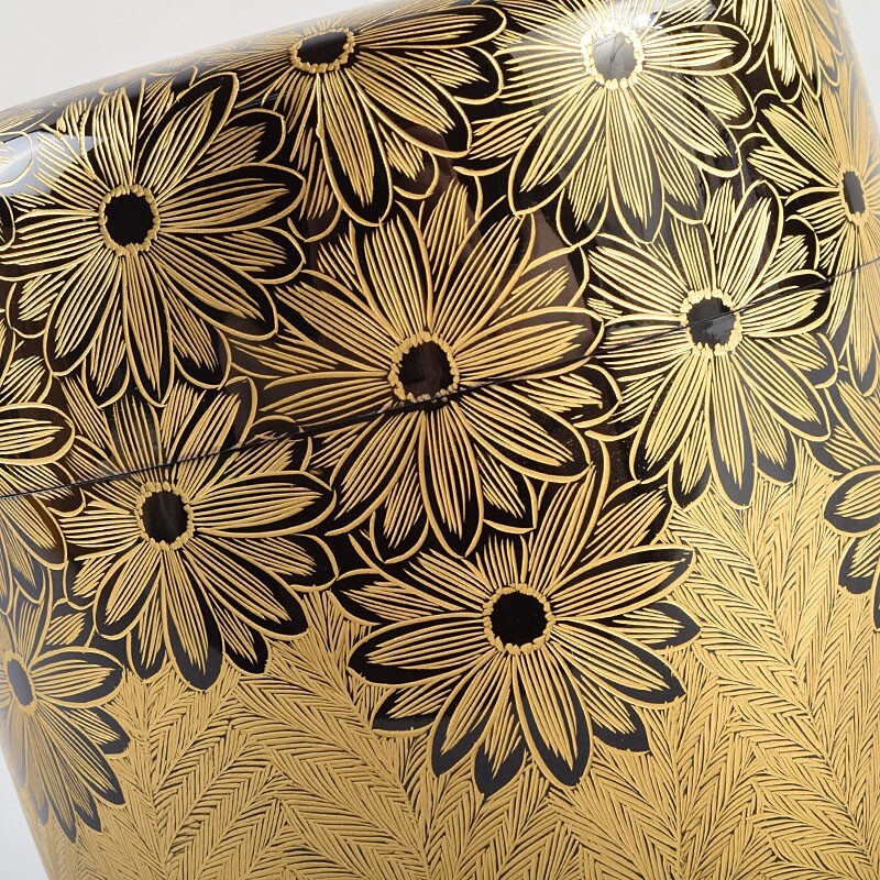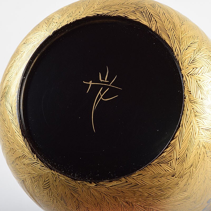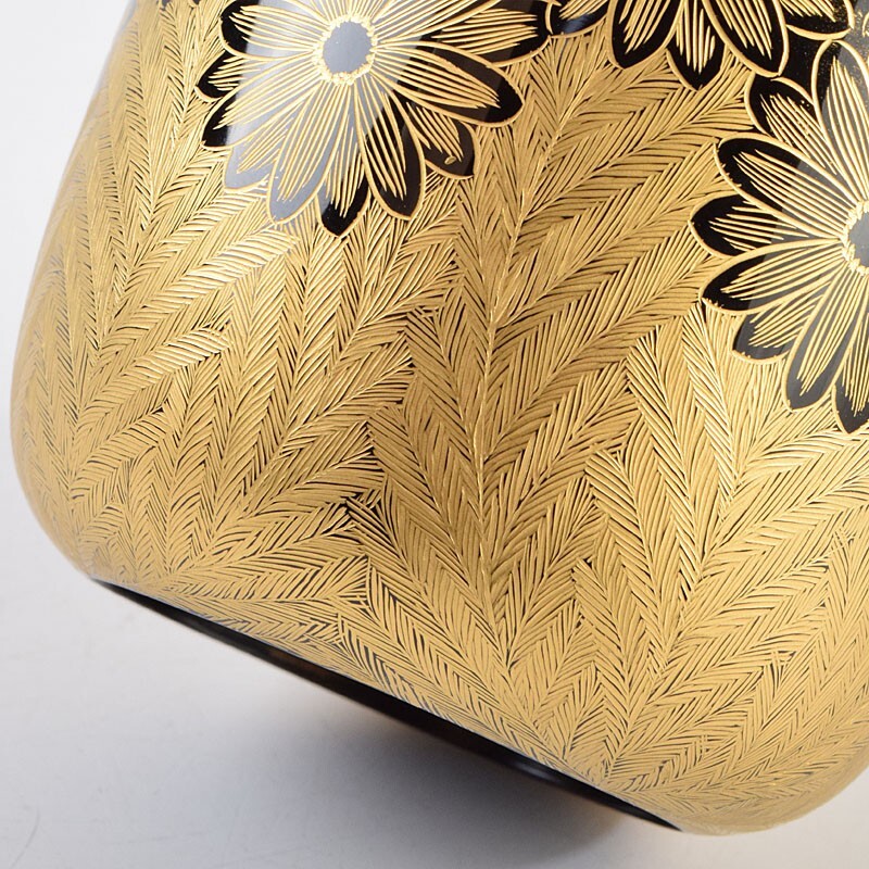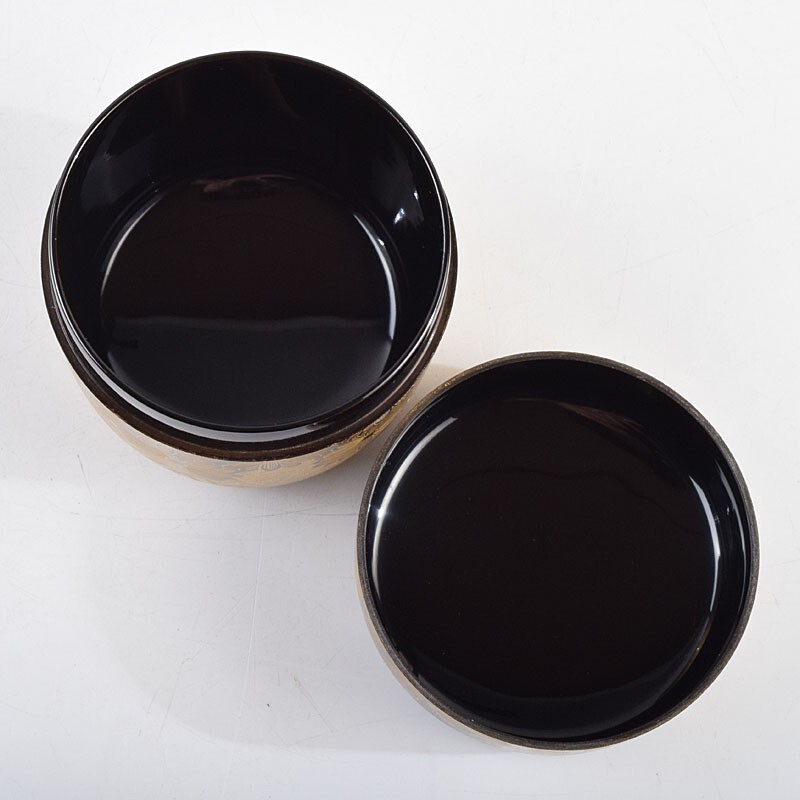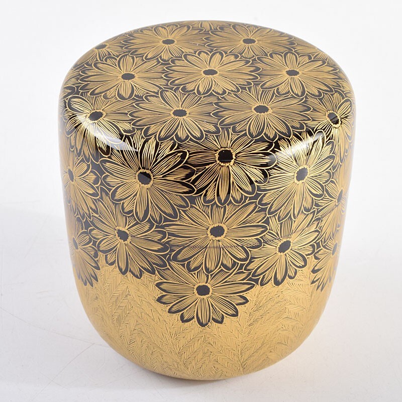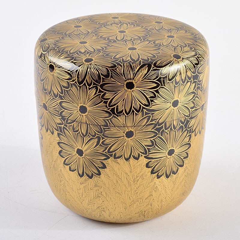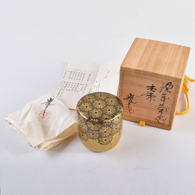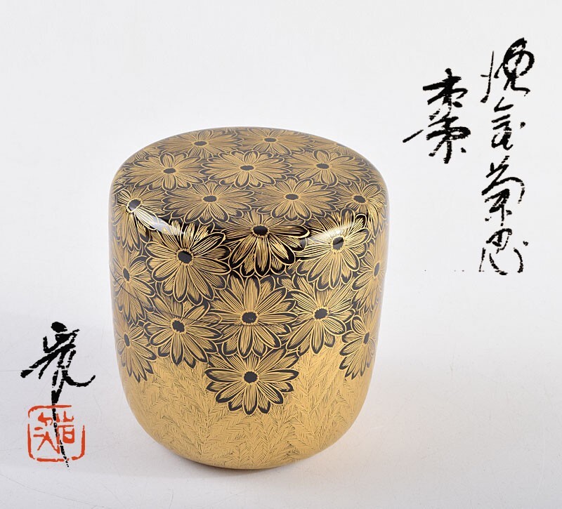 茶道具 輪島塗 沈金師 角野岩次作 沈金菊忍 棗 共布共箱 FCWL