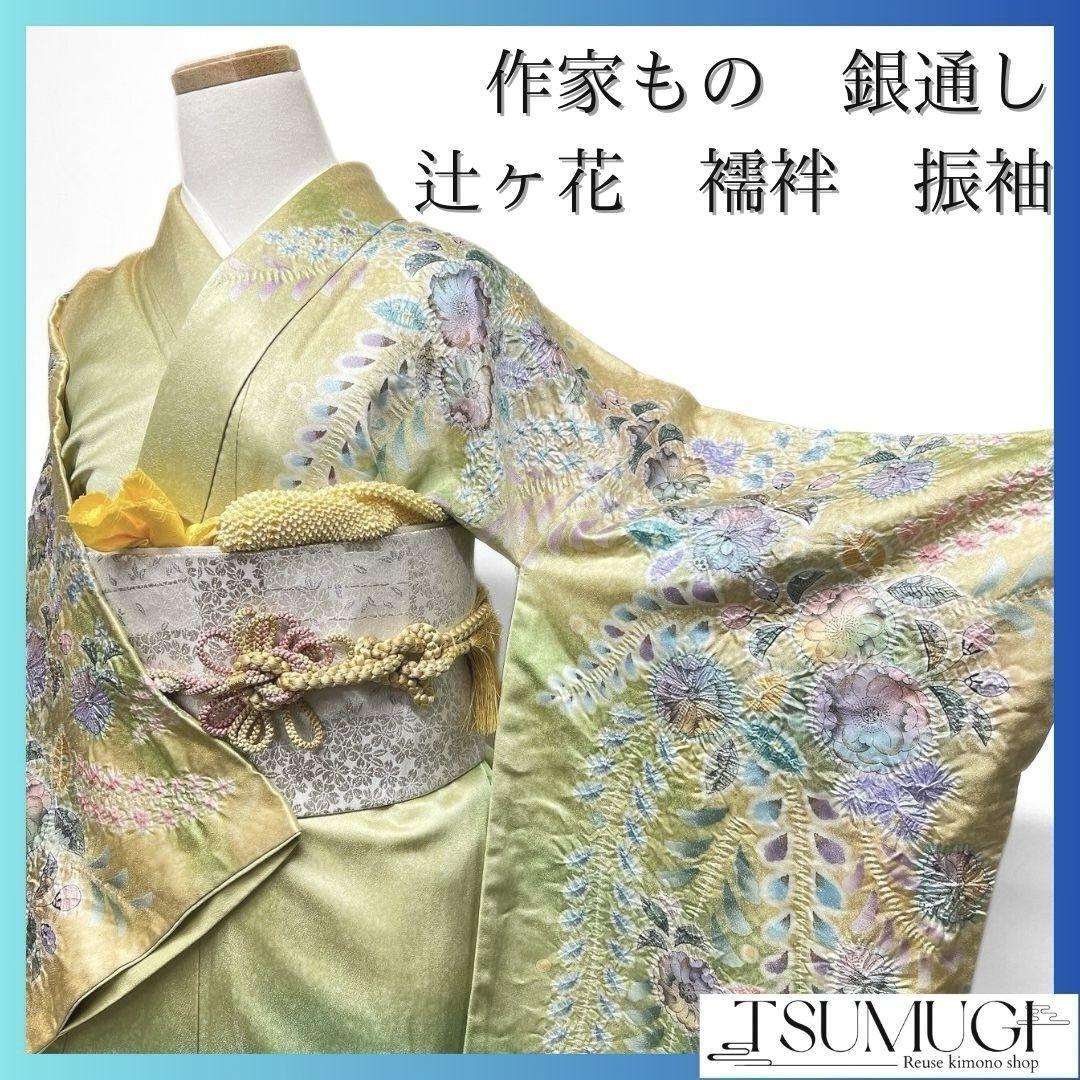 作家もの 銀通し 辻ヶ花 藤の花 振袖 襦袢セット 晴れの日 着物 032a p
