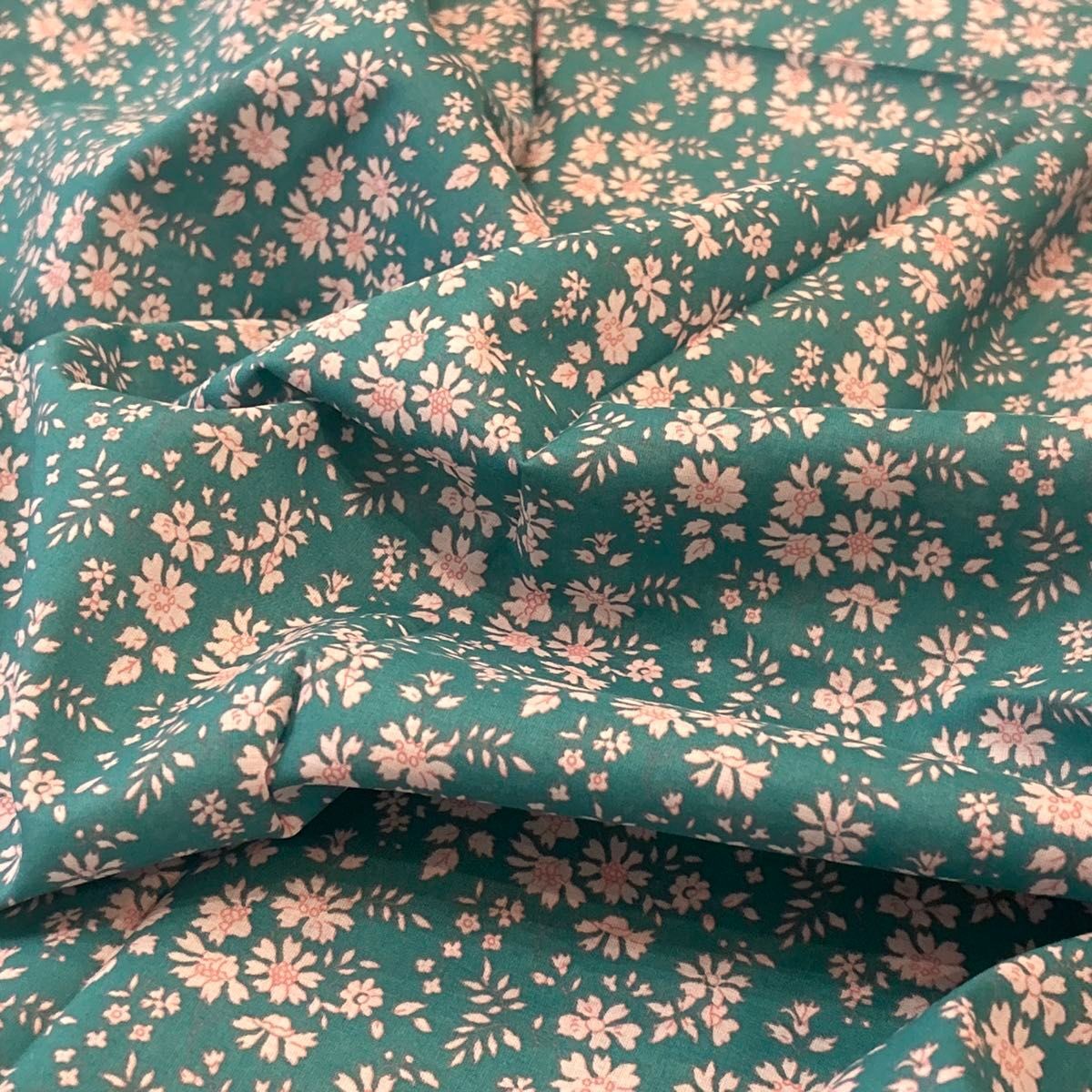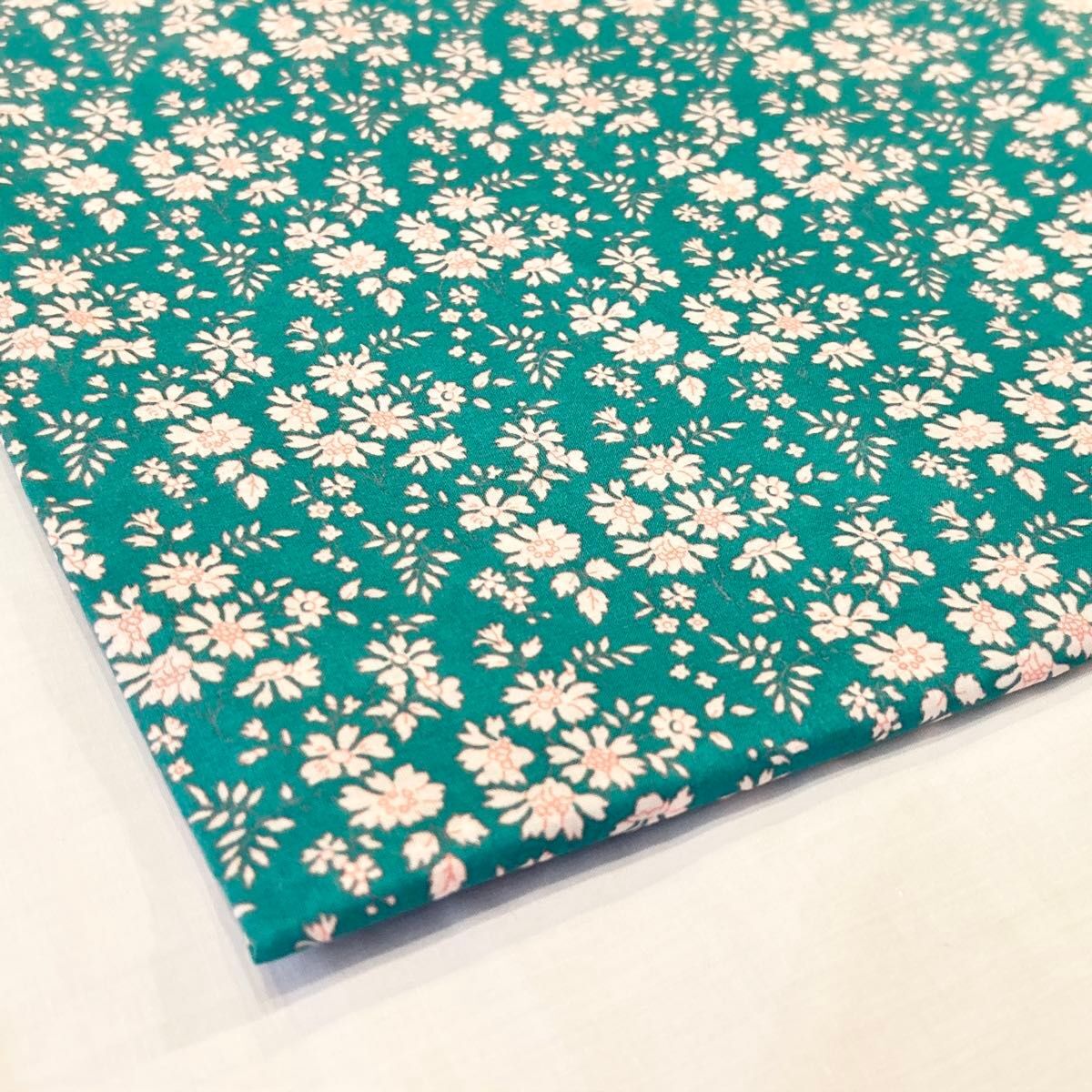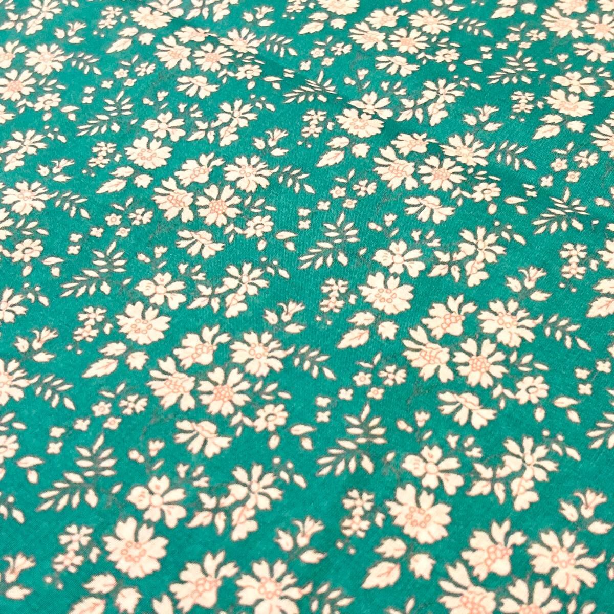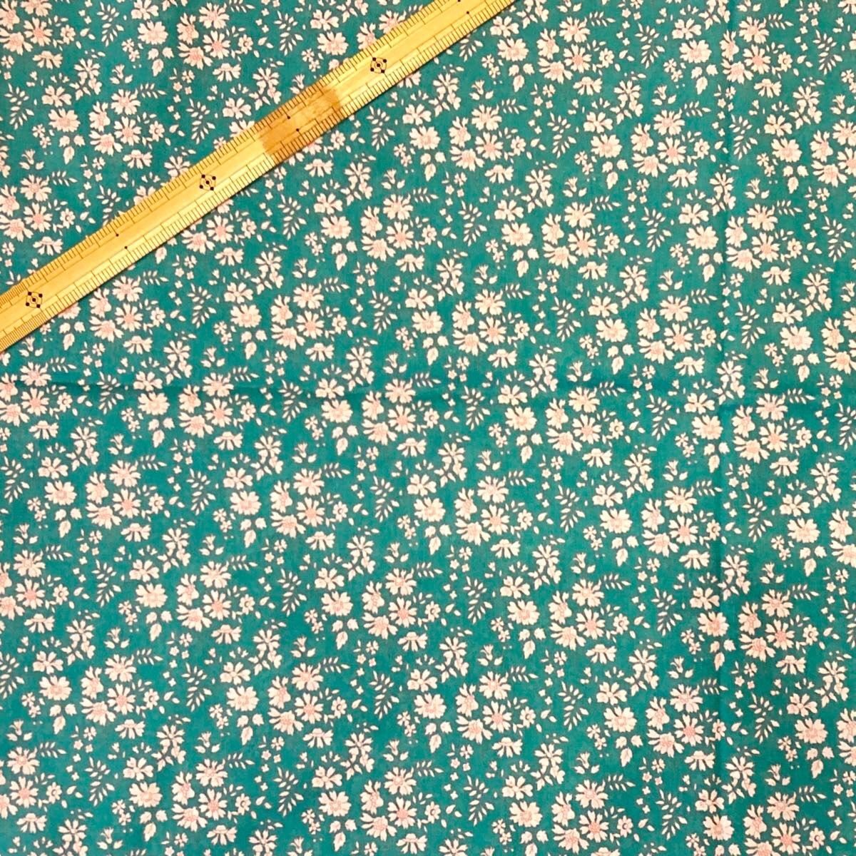RF1 プリント フラワー コットン100%生地 レトロお花①水色