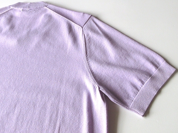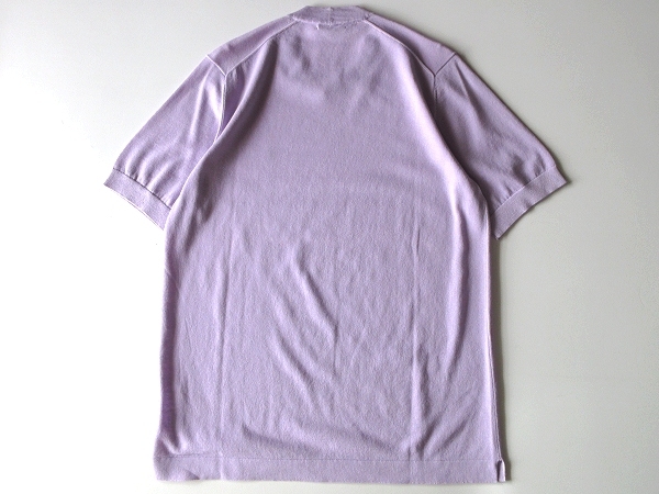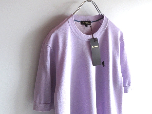 新品タグ付 Paul Stuart ポールスチュアート ロゴ刺繍 コットンリネン 半袖 サマーニット Tシャツ M ラベンダー 春夏 三陽商会正規品