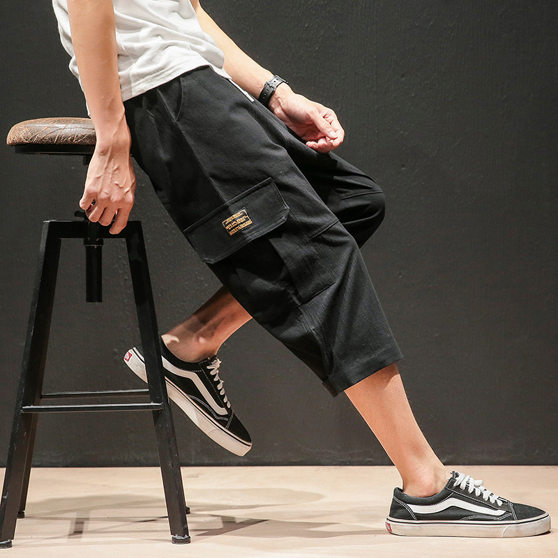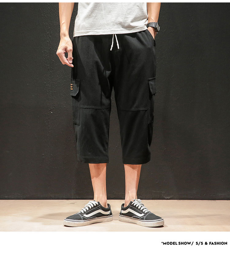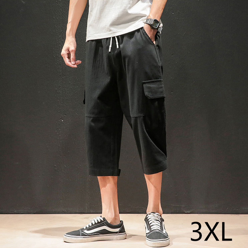 七分丈 ショートパンツ 綿 七分丈ズボン カーゴパンツ 大きい メンズ涼しい七分シャツ クロップド パンツ 7分丈パンツ ブラック3XL