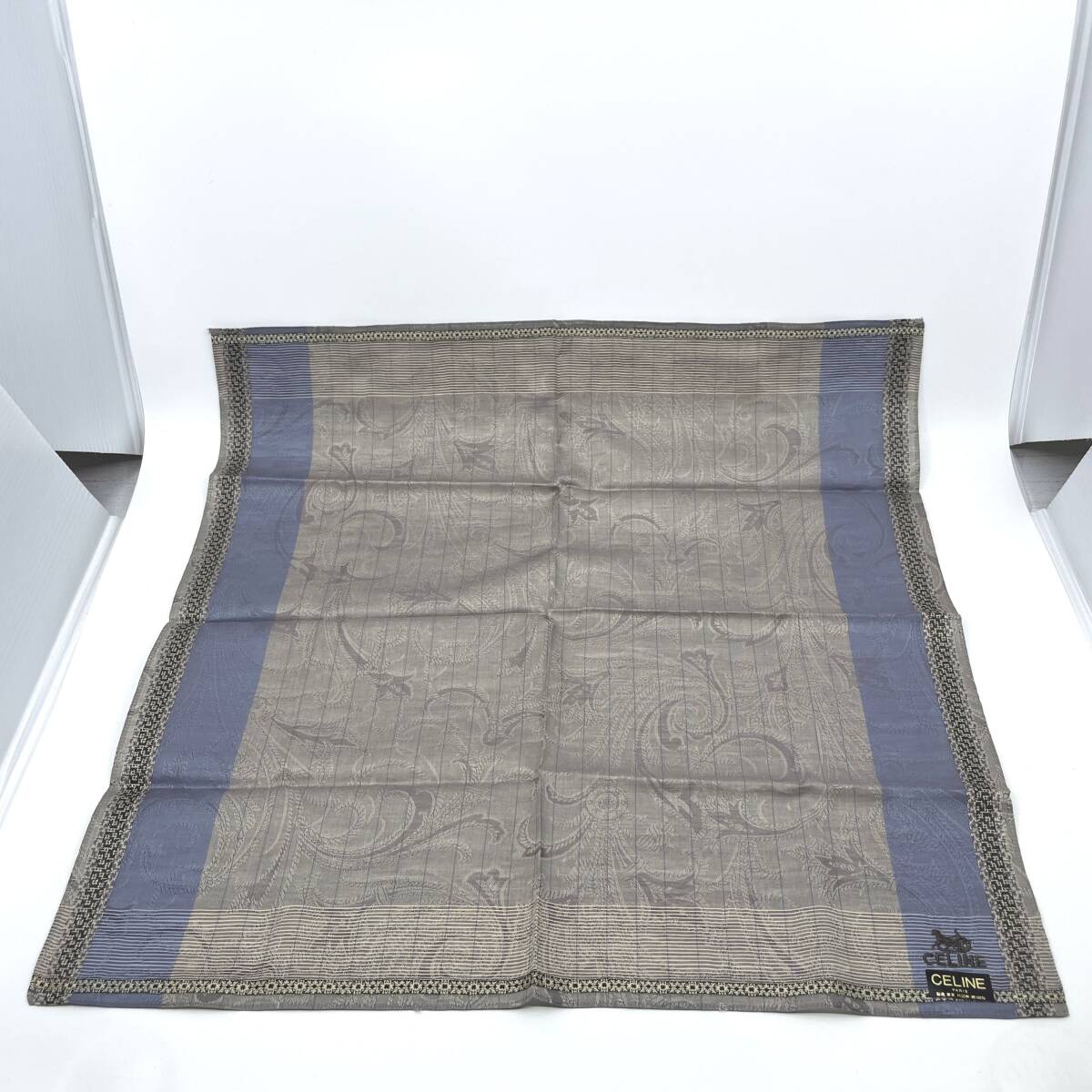 【シール付き未使用品】CELINE セリーヌ ハンカチ バンダナ グレージュ系 総柄 ロゴ刺繍 綿 コットン100% エレガント ラグジュアリー