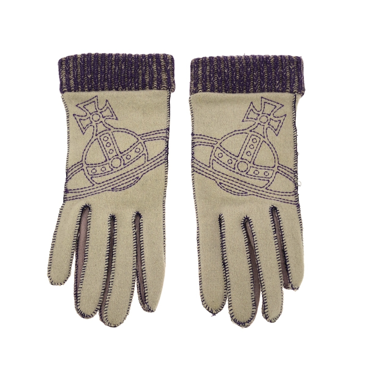Vivienne Westwood ヴィヴィアンウエストウッド オーブ刺繍ニットグローブ 手袋 ベージュ パープル - ITCAK4PZ30MG