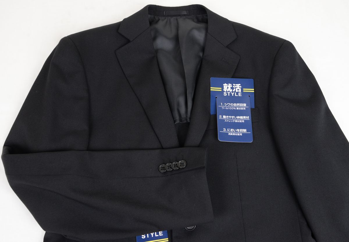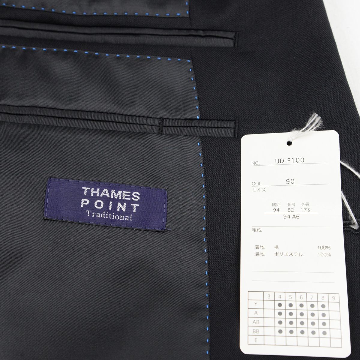 ●THAMES POINT就活STYLEメンズスーツ紳士ビジネススーツ(A6,黒,UD-F100,ノータック,春/夏/秋用,ウール100%,ストレッチ仕様)新品