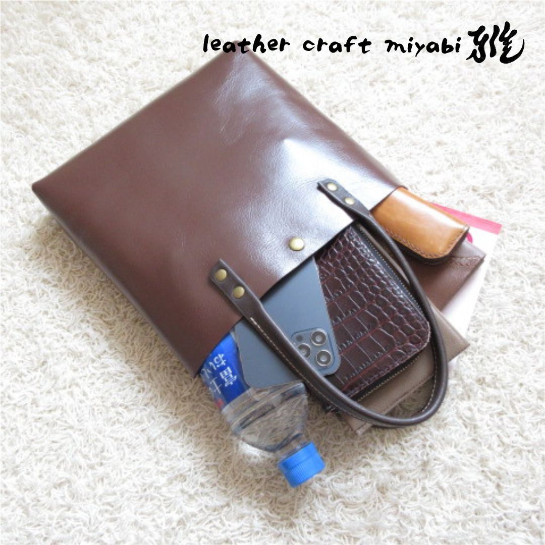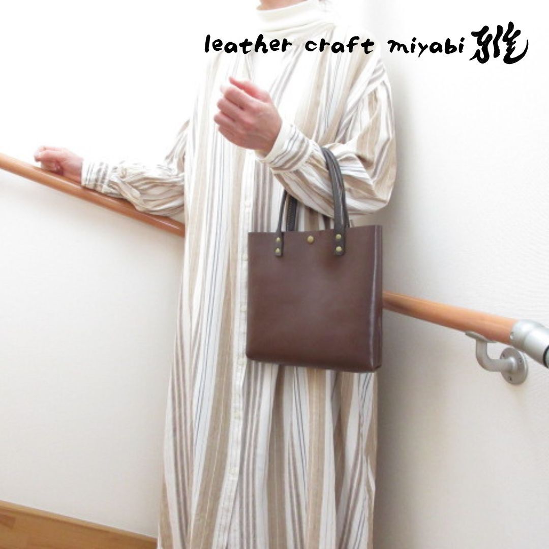 【L.C.雅】 たっぷり持てる♪《牛革》newスクエアミニトート・スムースソフトレザー・ダークブラウン・0467