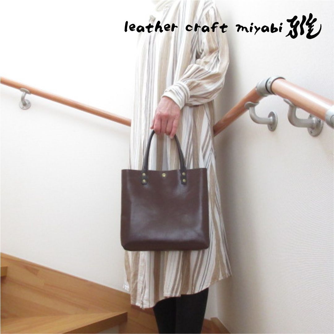 〇ハンドルは更に濃いダークブランのソフトシュリンクを使い、ベージュのステッチで仕上げてソフトな印象のアクセントを付けました(^^