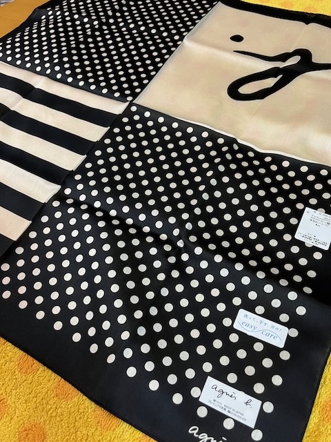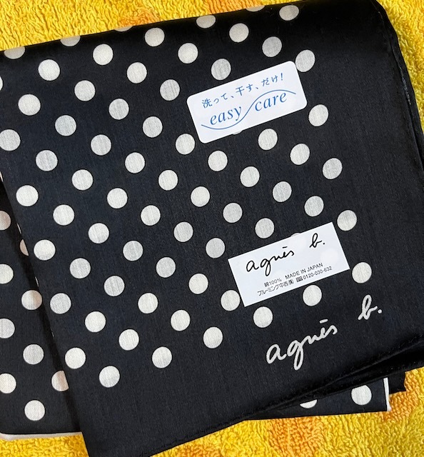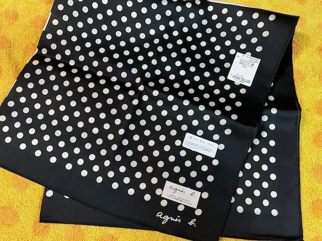 agnes b. アニエス・ベー コットンスカーフハンカチドット 黒
