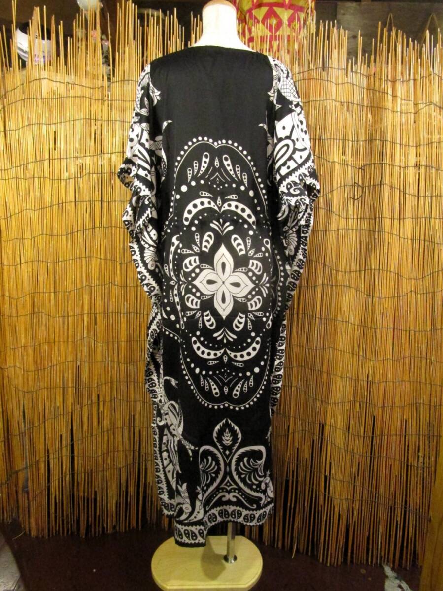 ④新品*薄手ビスコース素材*ゆったりサイズ *曼荼羅風プリント*ガラベーヤ*ポンチョ風*マキシ丈*ワンピース*ベリーダンス