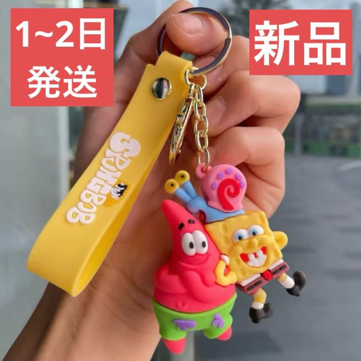 こちらは海外で販売されている、スポンジボブ、パトリック、ゲイリーが一緒になったキーホルダーです。