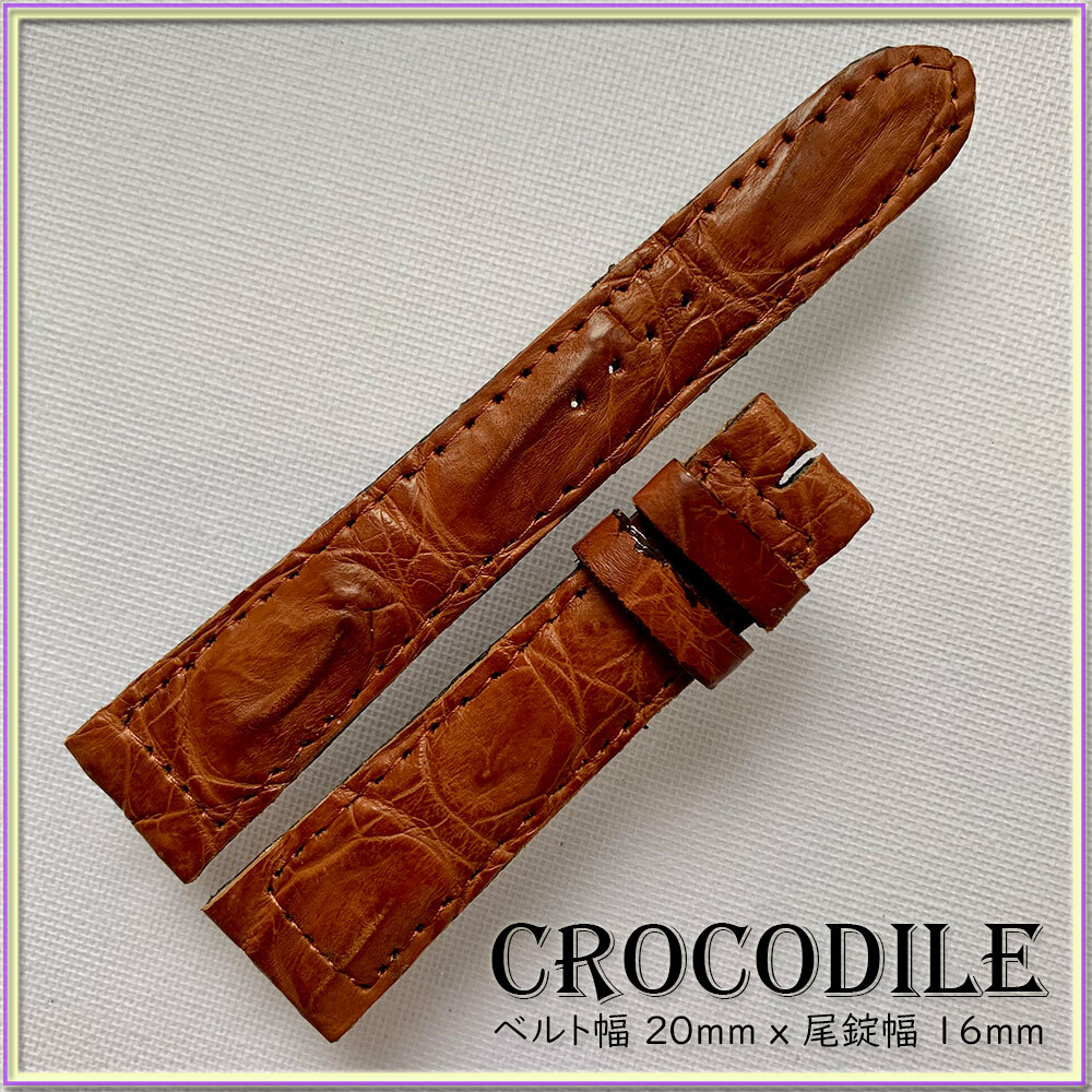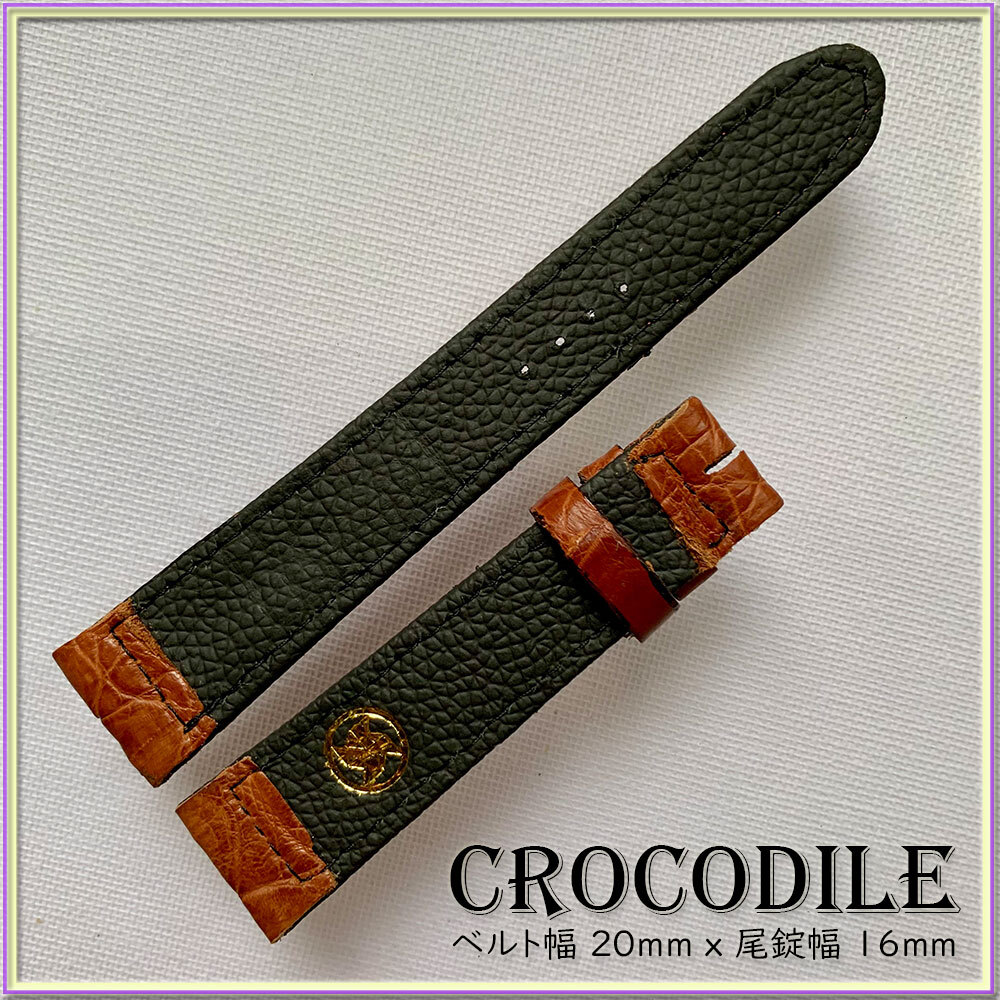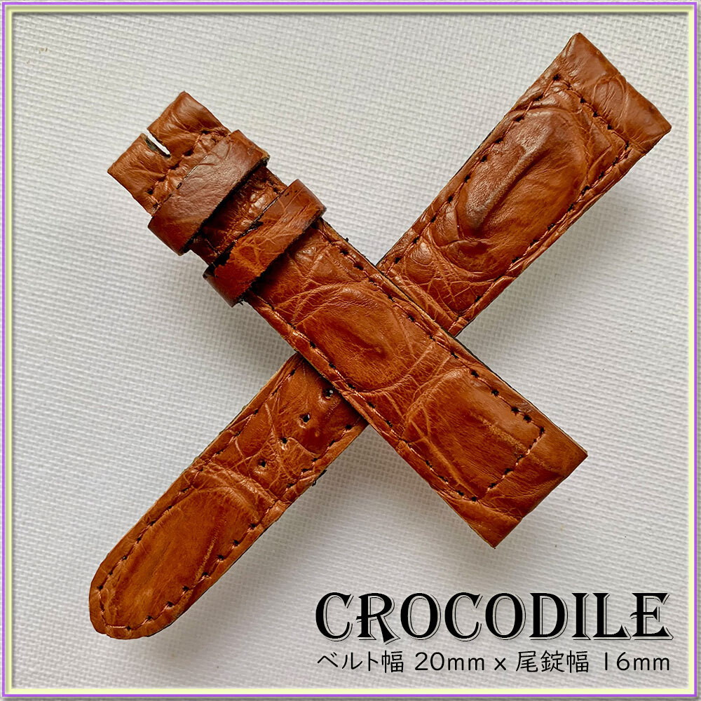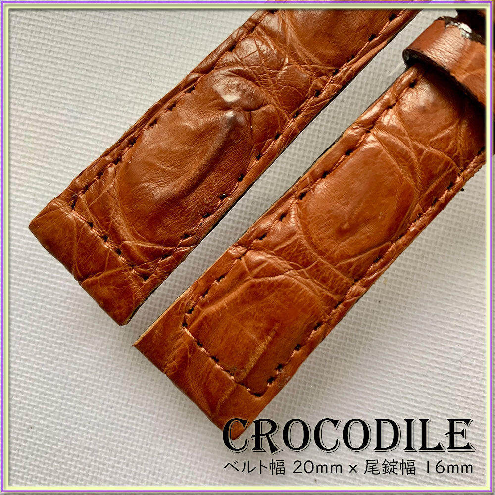 SALE!別注 20mm 1点物 本革 クロコダイル ワニ革 時計ベルト イタリアンブラウン ITALIAN BROWN クロコ 竹符模様 職人技 限定 刻印