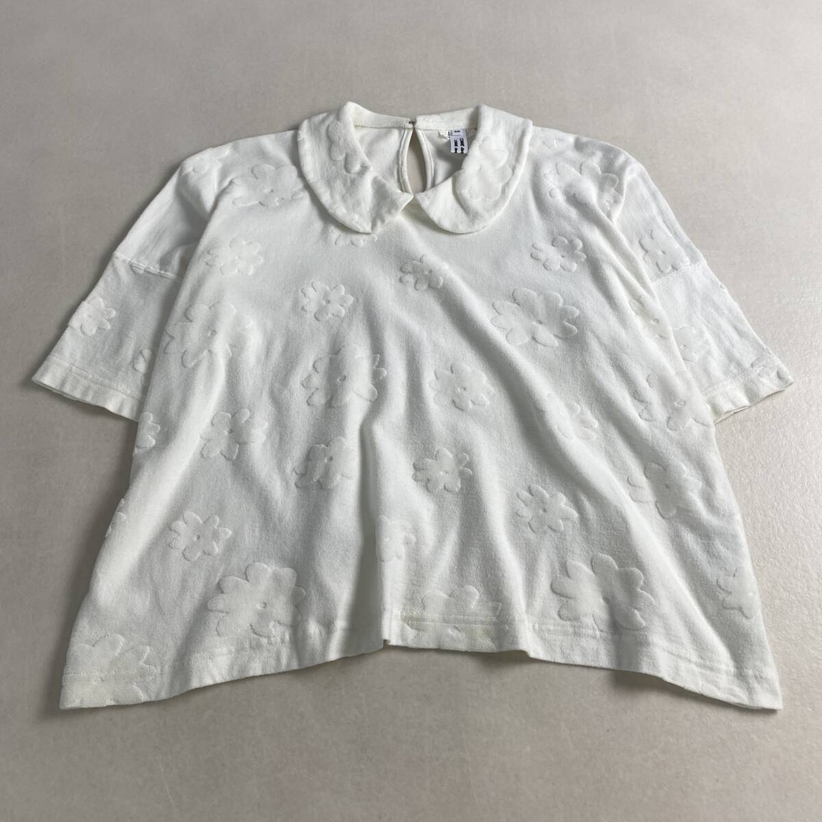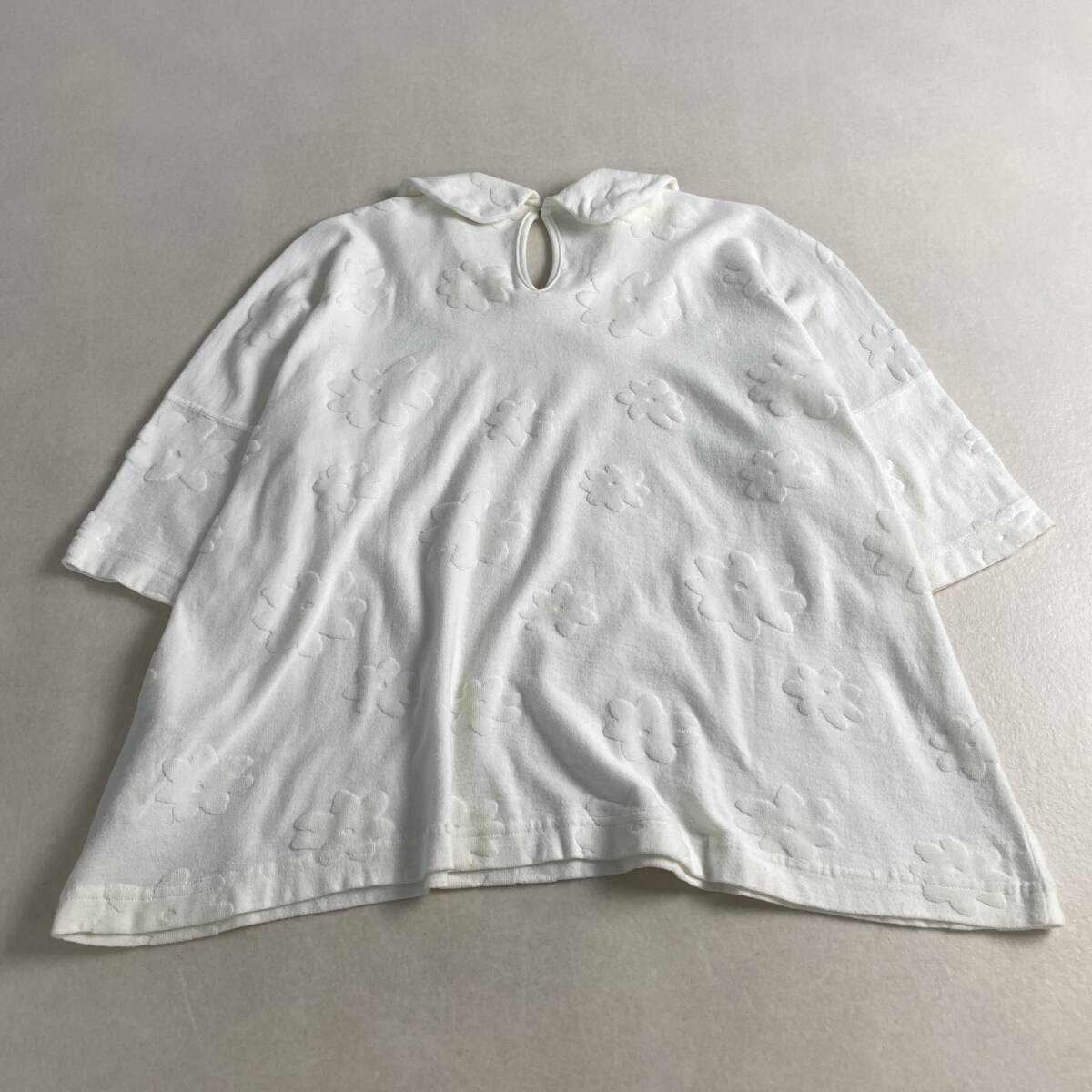 【ポイント】半袖 丸襟 立体 花柄 オフホワイト AD2015