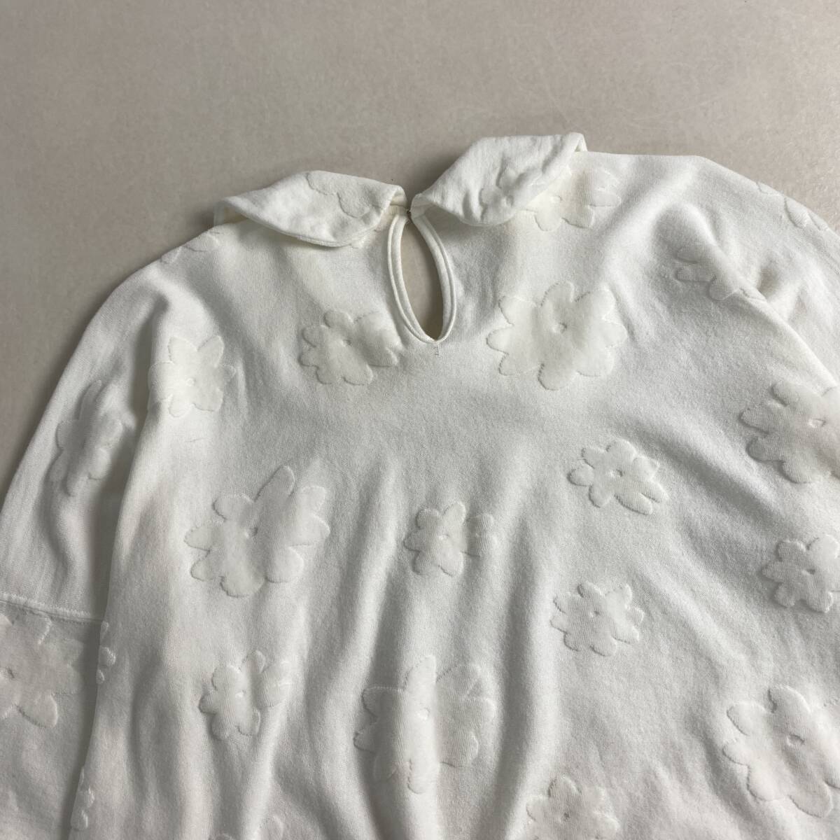 コムデギャルソンコムデギャルソン ニット 半袖 丸襟 立体 花柄 オフホワイト AD2015