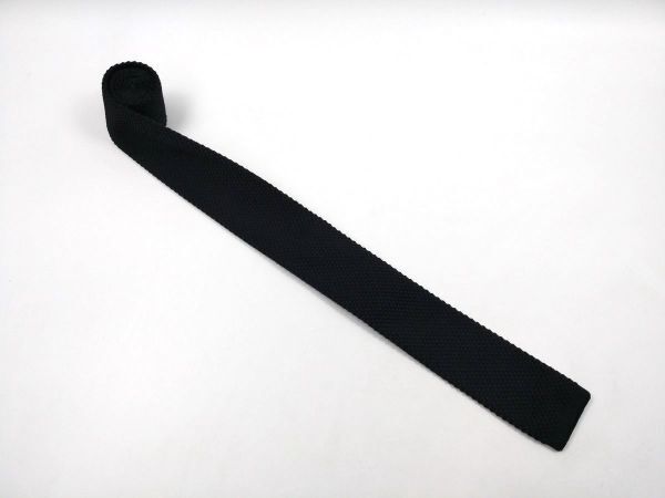 | ニットタイ ネクタイ 無地ブラック 自宅保管の未使用品です。 カラー:写真の通り(環境によって青っぽく見えるようでうが、黒です。) サイズ:全長約144cm 最大幅:約6cm パッケージはありません。 保管時や輸送費に折り皺等が付く場合がありますので、アイロン前提でご入札ください。 |