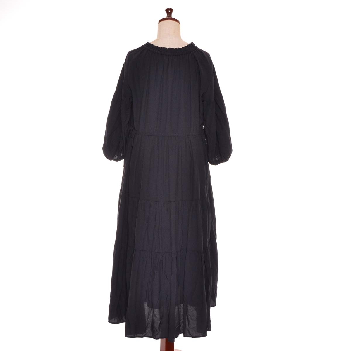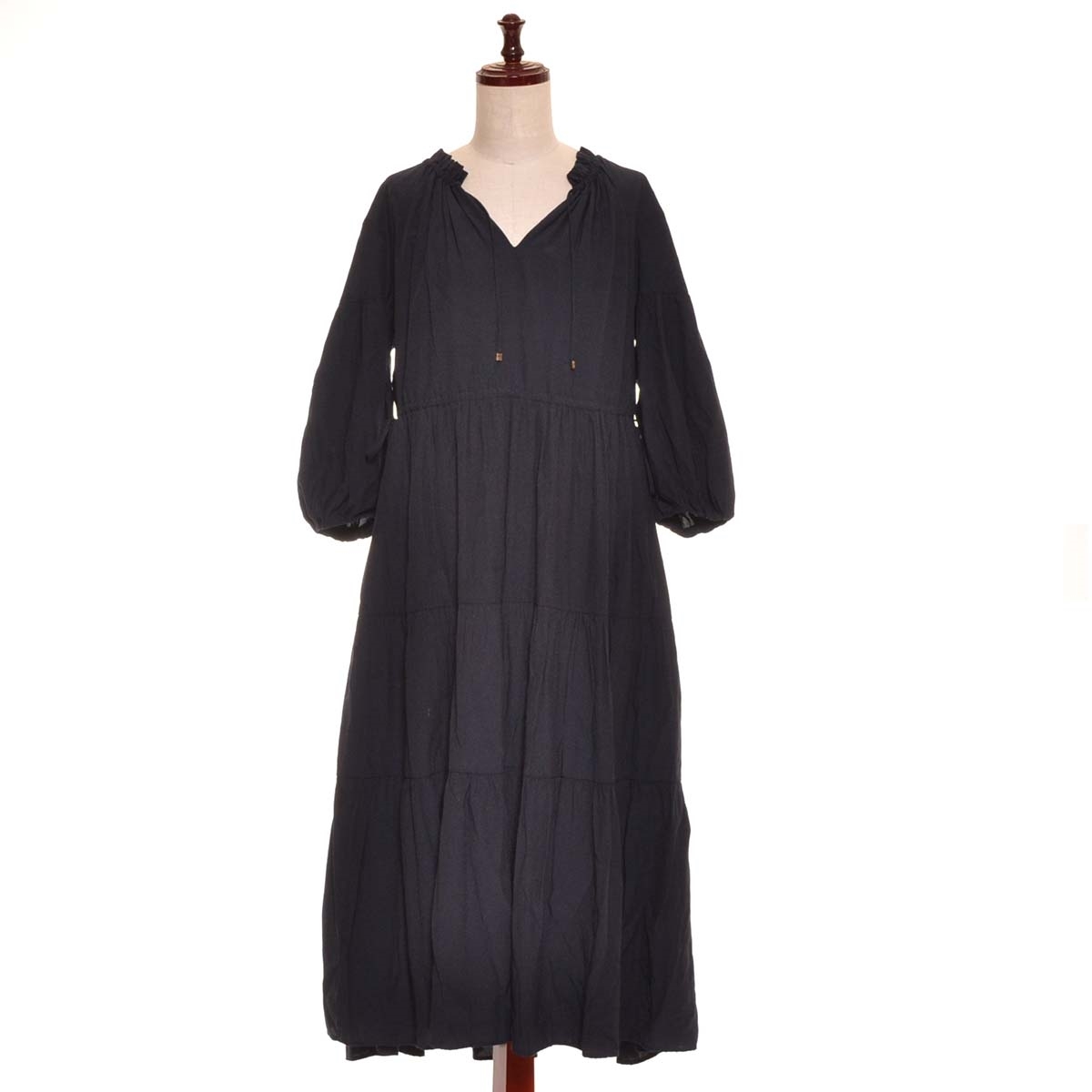 歩くたびに揺れ感が出る、春の一枚着にもおすすめのティアードワンピース。ボリュームがありながらも、やわらかい素材感で太めに見えにくいのもポイント。顔周りがすっきりとした印象になるキーネックで、程よい抜け感も演出。