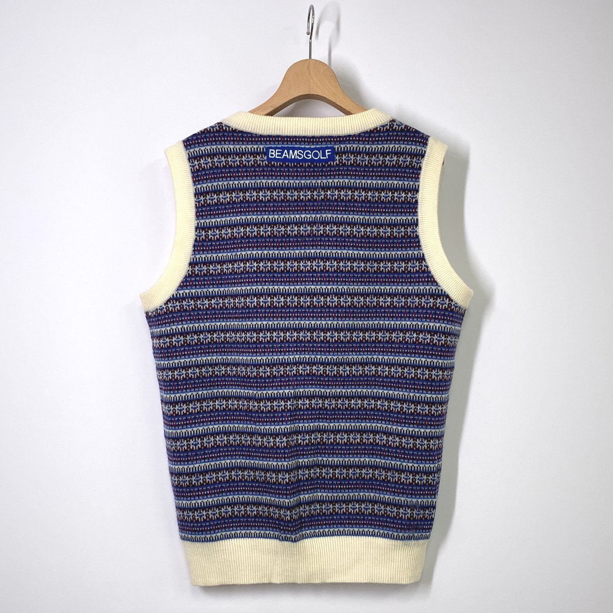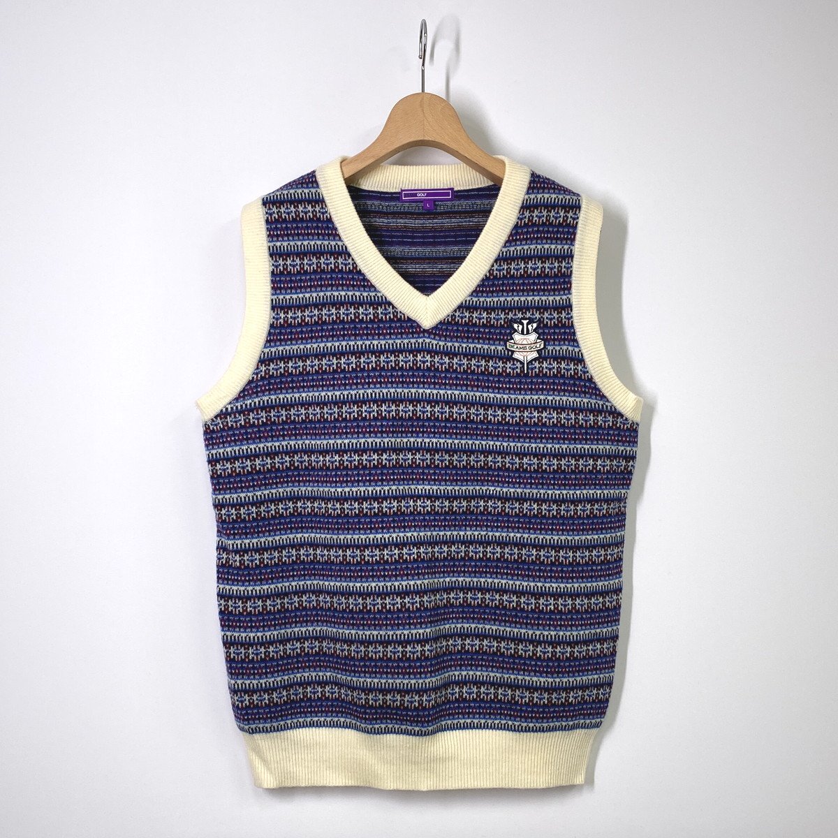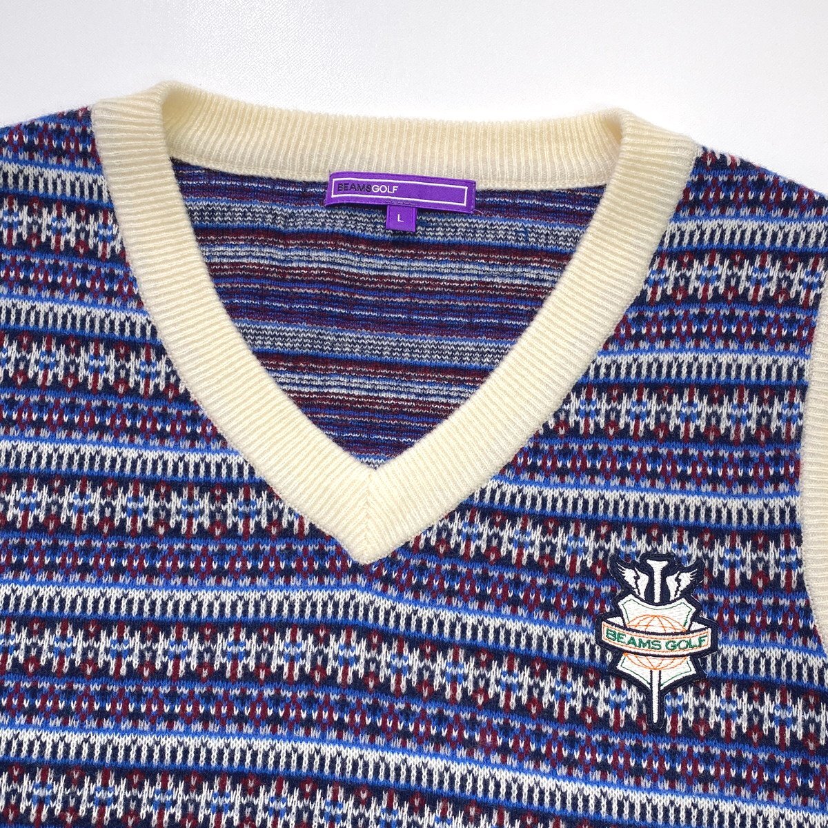 【メンズ L】BEAMS GOLF ビームス ゴルフ パープルレーベル ニット ベスト ブルー 青 HC1107
