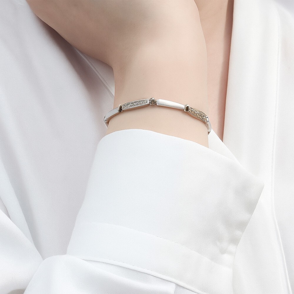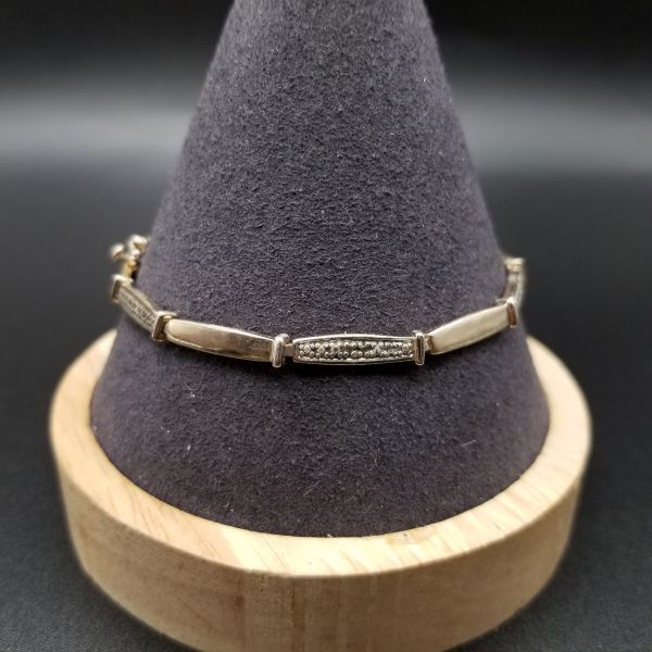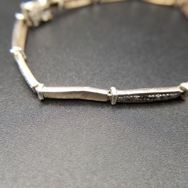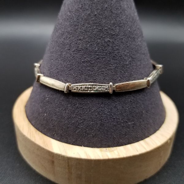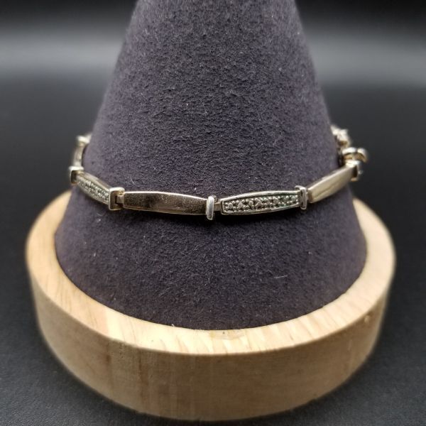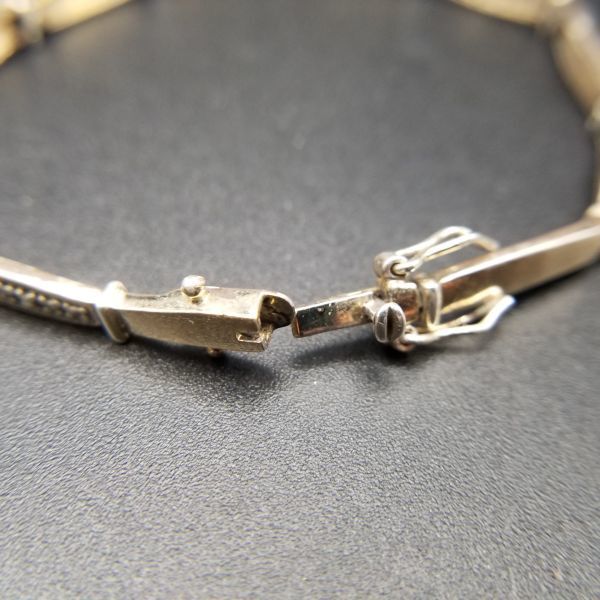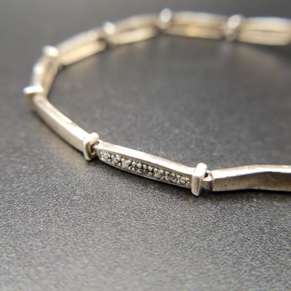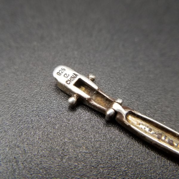 クリア ラインストーン チェーン リンク 925 シルバー ヴィンテージ テニスブレスレット 銀細工 華奢 エレガント 9g 金メッキ 8Y-P