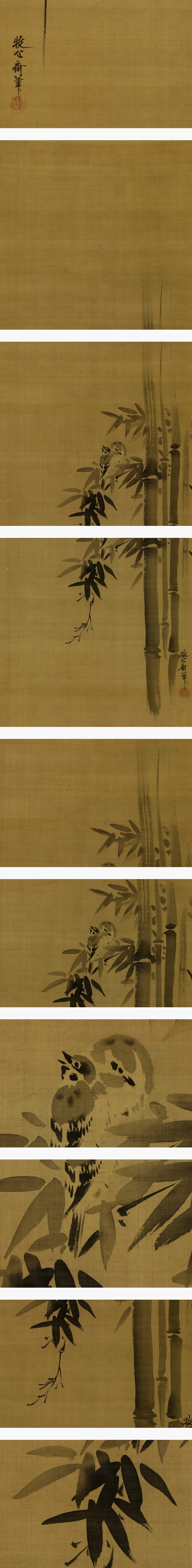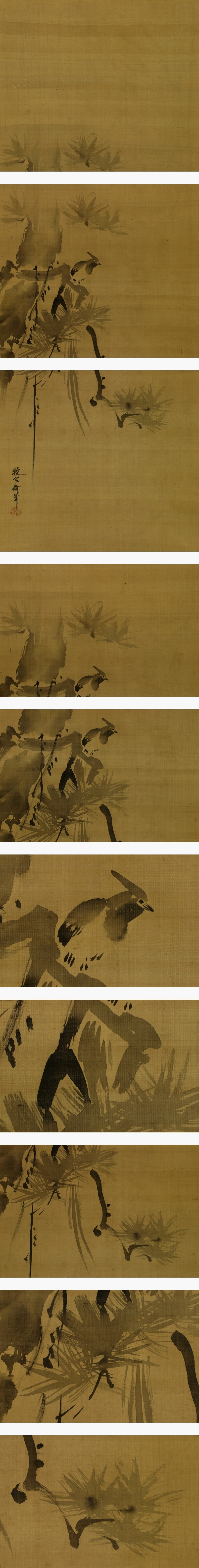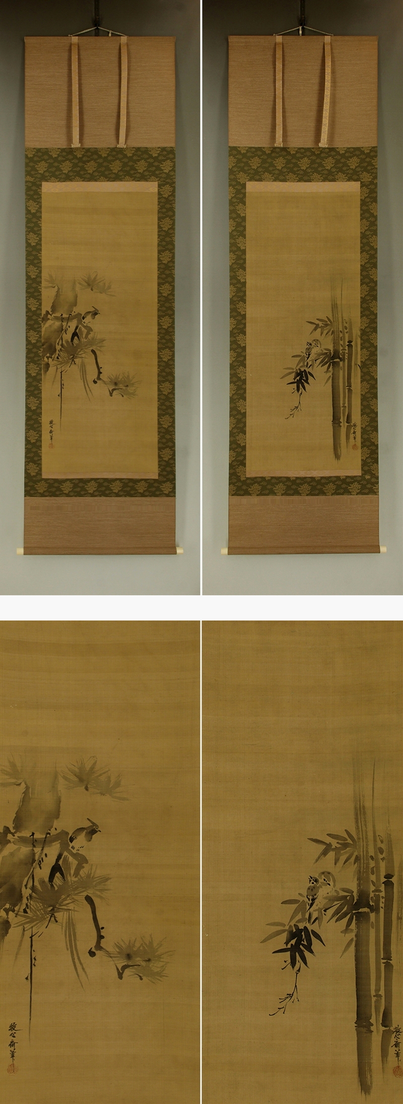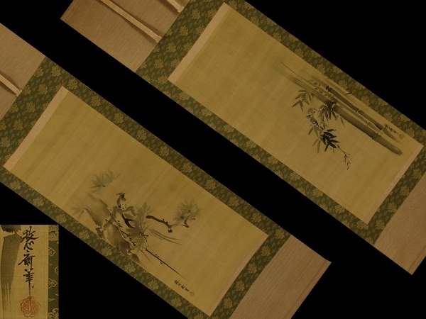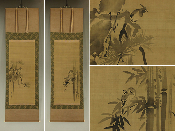 | №2503034【模写】狩野安信(牧心斎)【双幅・松に山鵲・竹雀】◆絹本◆合箱◆掛軸 | |