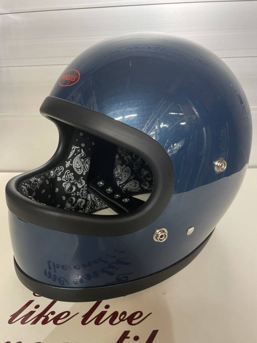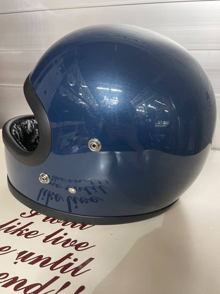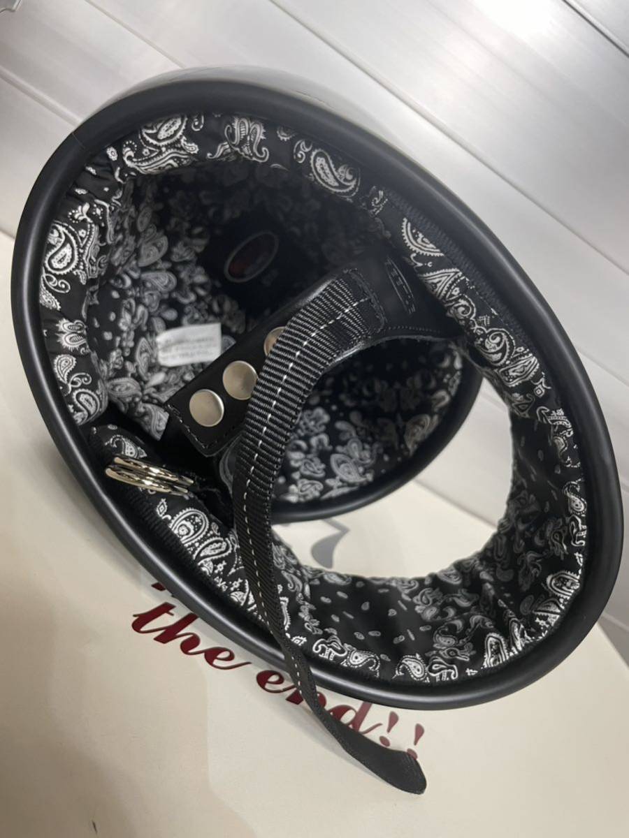 オールドヘルメットはダブルストラップの仕様が多く使われていて、金具、レザー部分がよりカッコ良さを引き立てます。