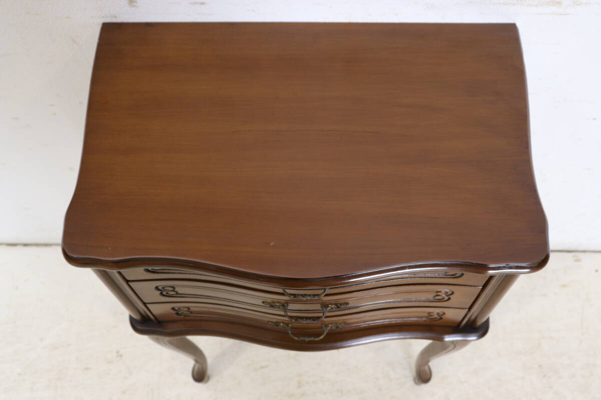 本品は、1960年代前後にフランスで製作された、コンパクトなサイズ感と優雅な曲線が魅力のヴィンテージスモールチェストです。