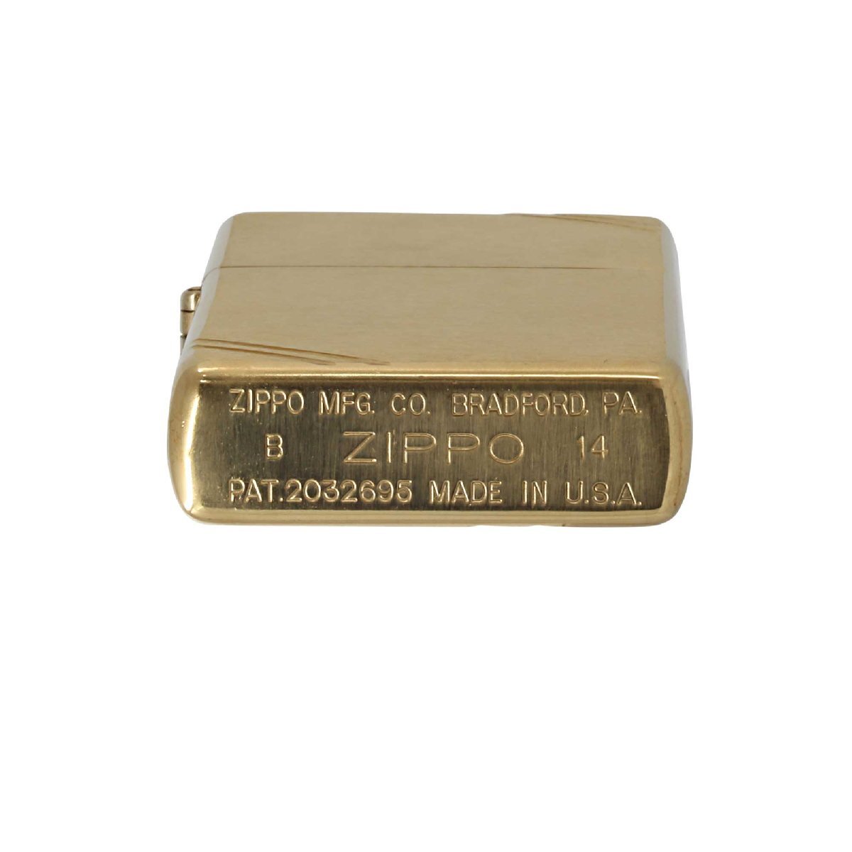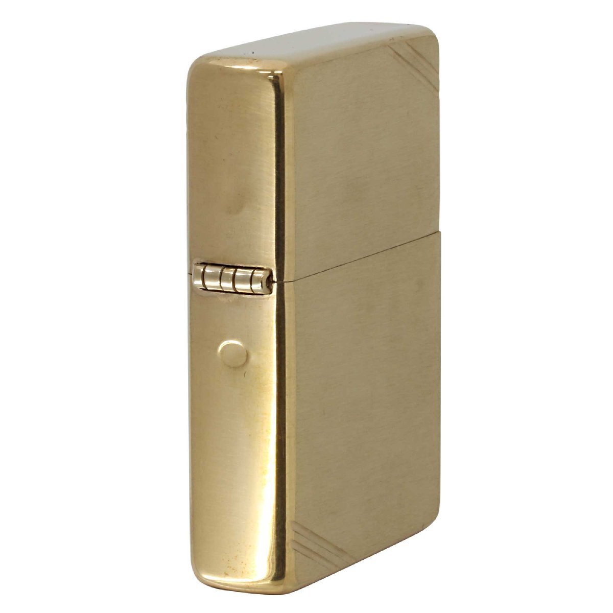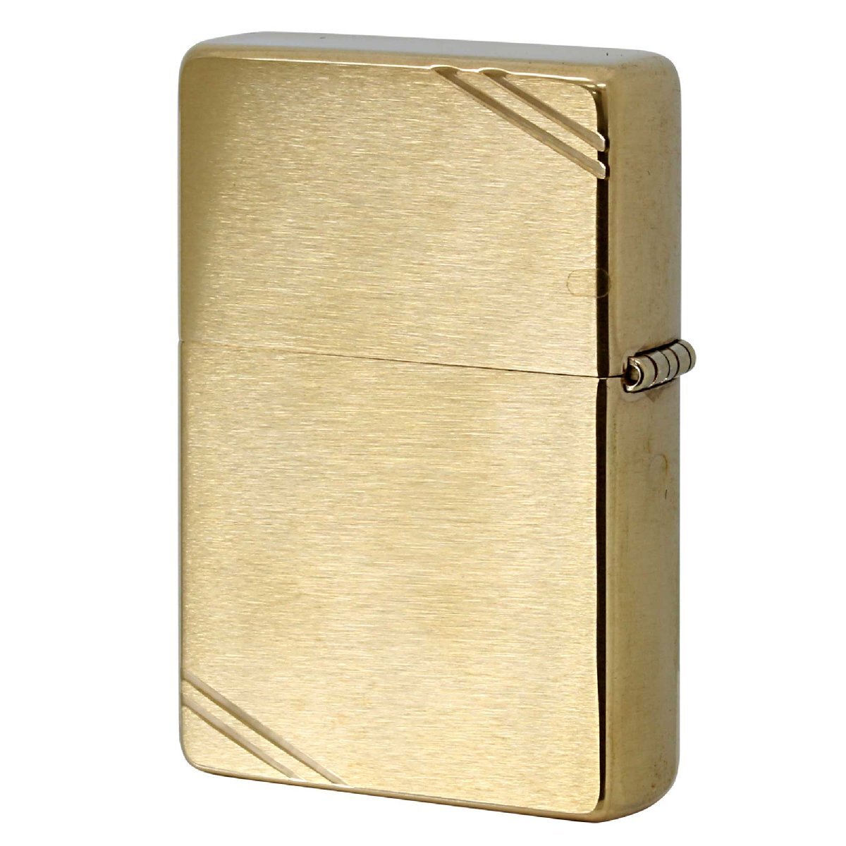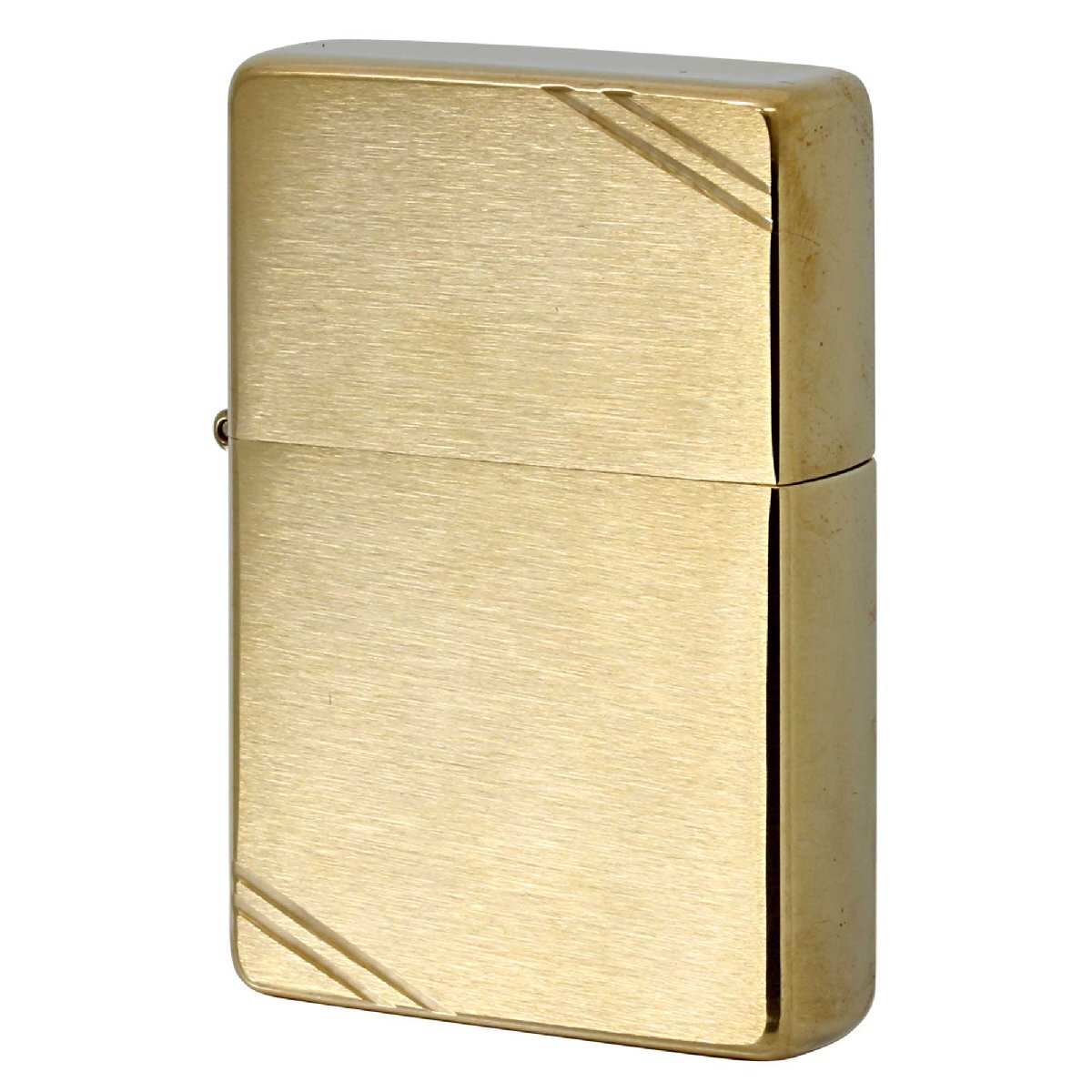 真鍮無垢のケースを使用。ZIPPOの素材そのものである真鍮むき出しのモデル。ブラッシュド加工。別名1937レプリカとも呼ばれるフラットトップヴィンテージZIPPOです。デザインに落ち着きを与えてくれるダイアゴナルライン(ケース角の2本線)は、ZIPPO社創業当初のデザイン。