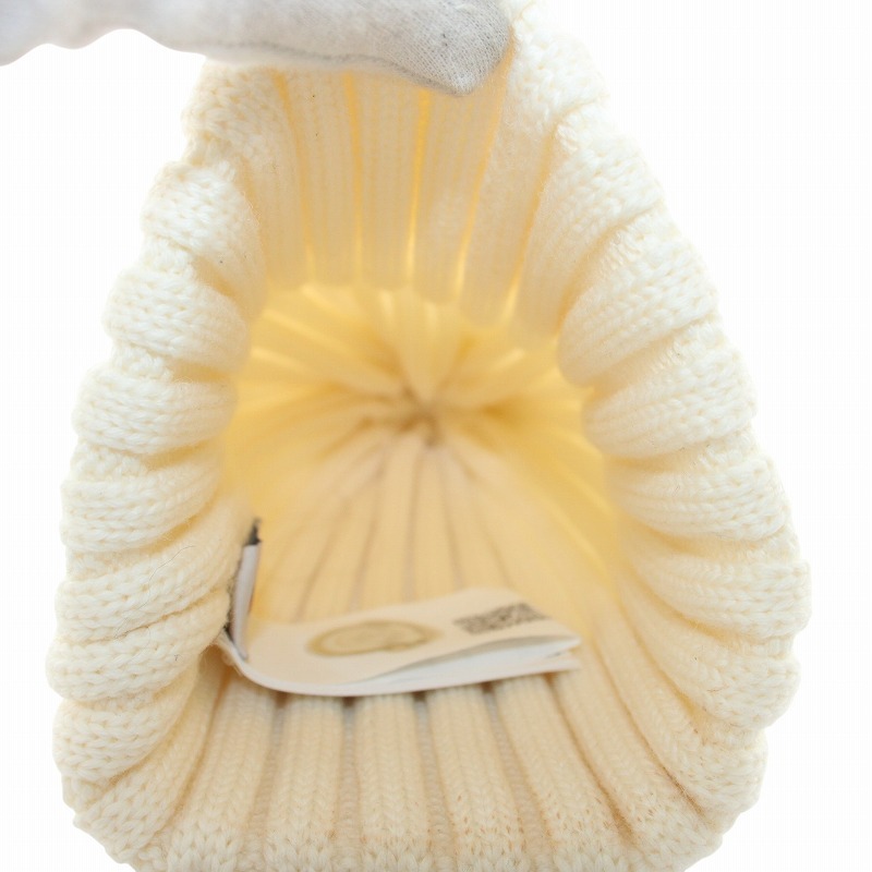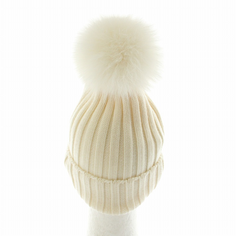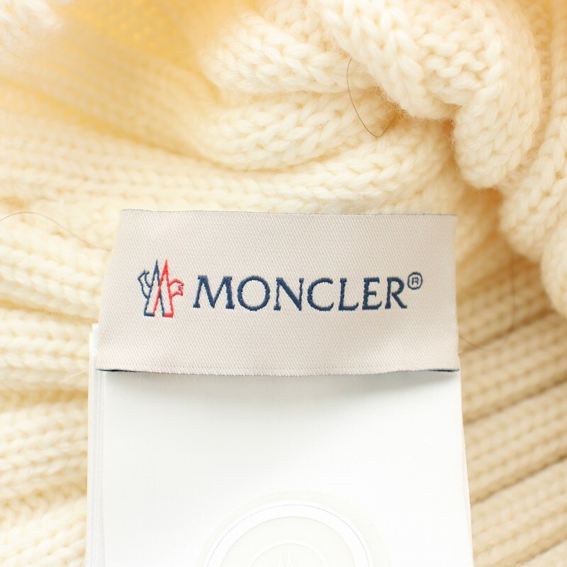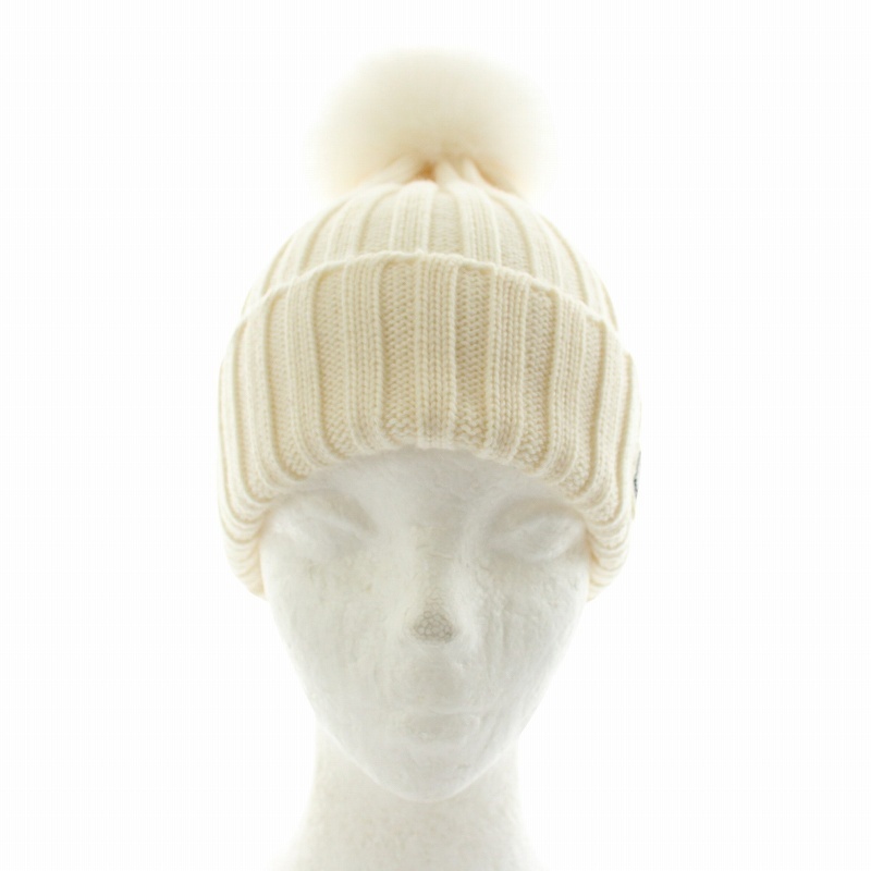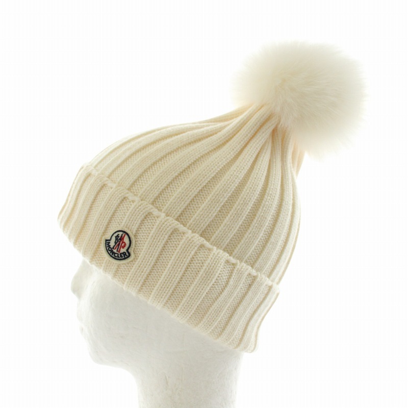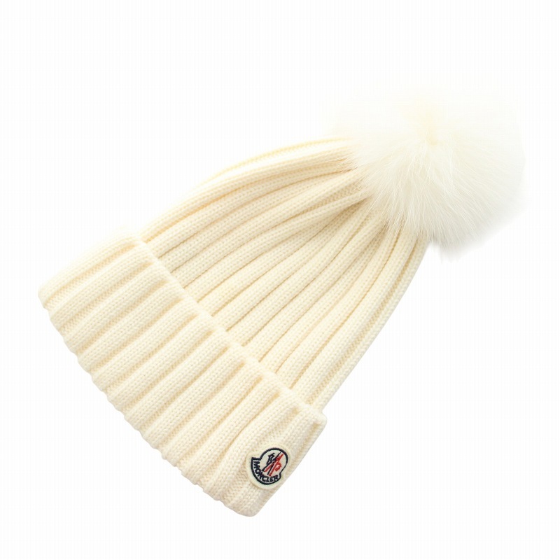 モンクレール MONCLER BERRETTO 帽子 ニット帽 ウール 毛皮 フォックスファー ポンポン ロゴ ワッペン アイボリー