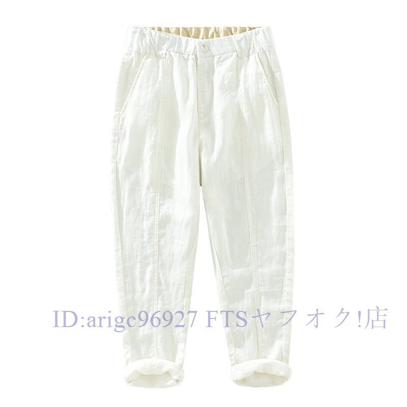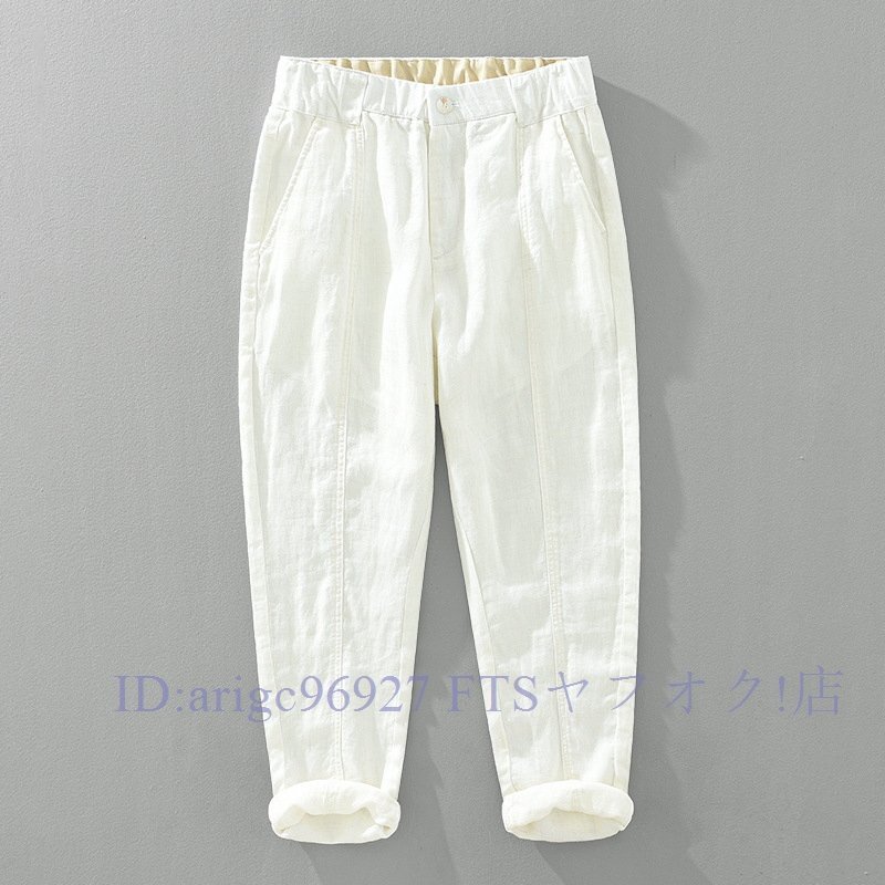 新品★上質リネン パンツ メンズ九分丈 サマー パンツ麻100% パンツ スラックス春夏服通気ズボン白【 M-3XL選択】2色