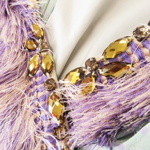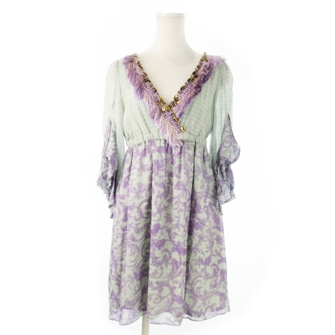 ダイアグラム グレースコンチネンタル Diagram GRACE CONTINENTAL ミニワンピース 五分袖 絹 切替 ビジュー フリンジ ドット 36 S 緑