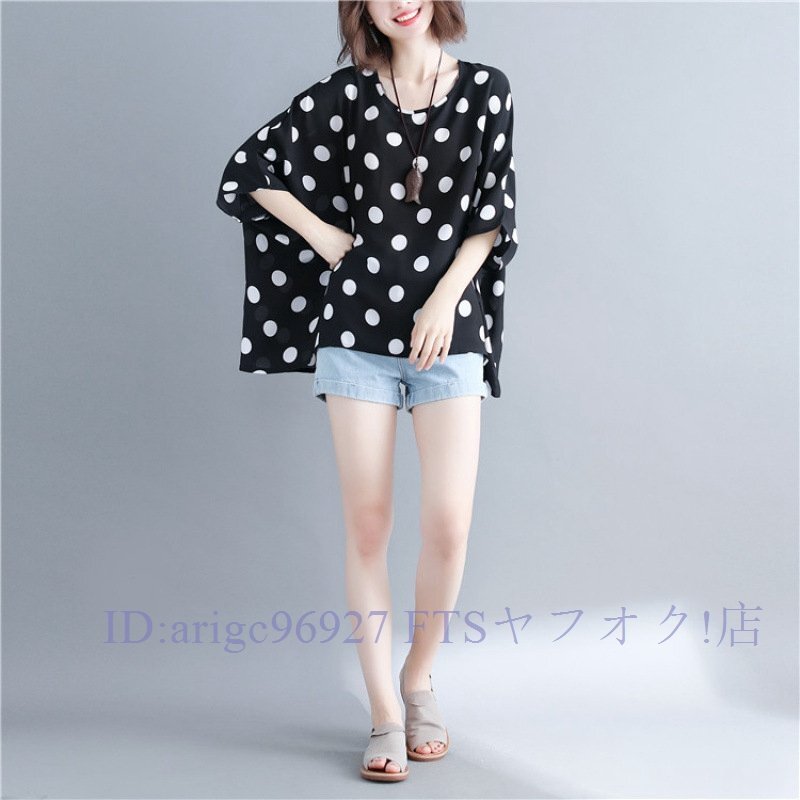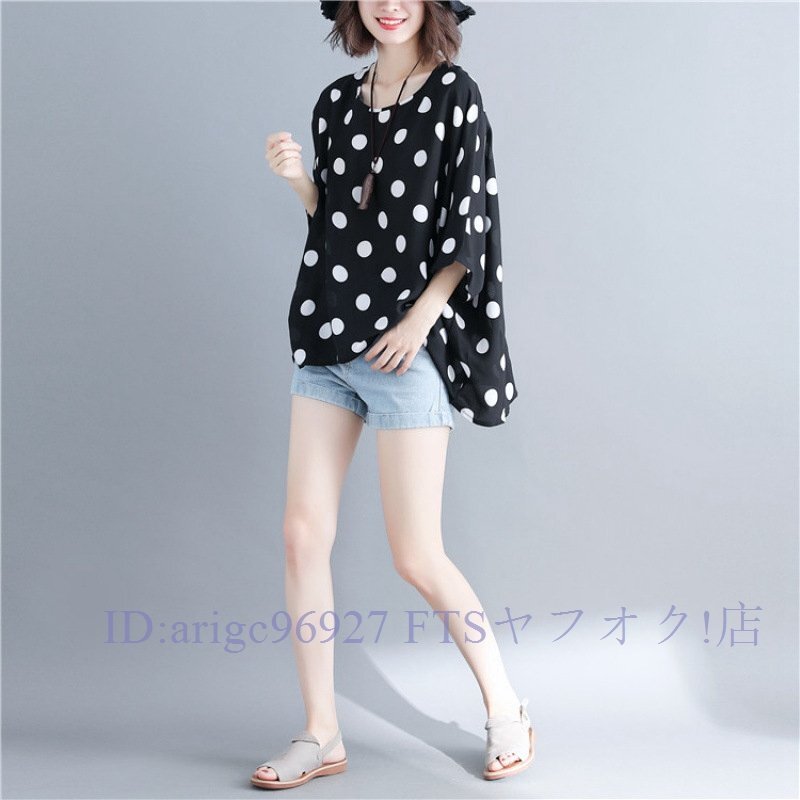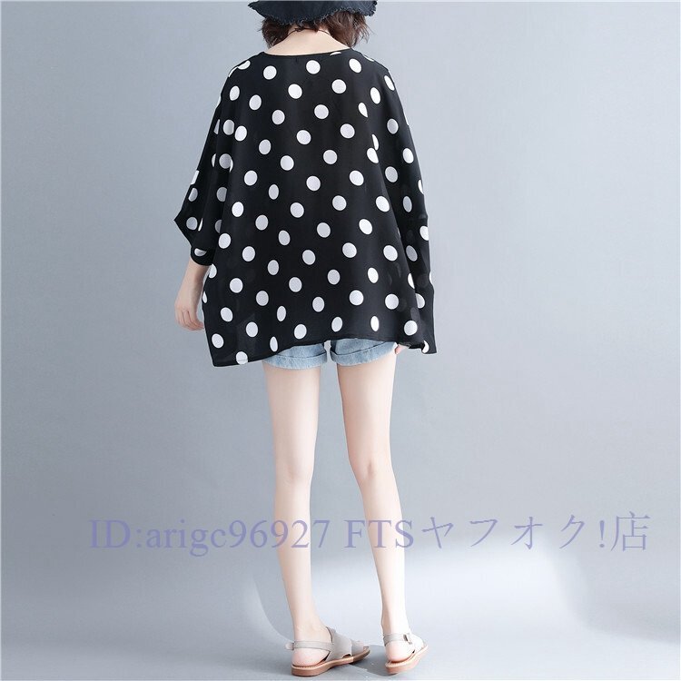 新品★人気上質春夏レディースカジュアルVネックプリント柄ゆったり大きいサイズ体型カバー綿麻ブラウスシャツ