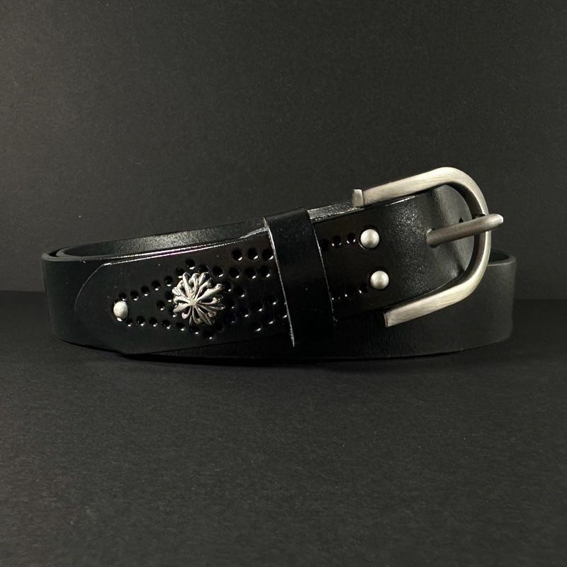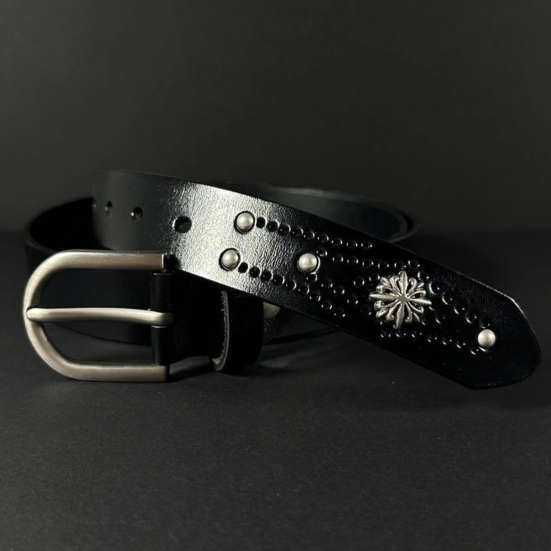 ベルトエンドには存在感のあるスタッズとシルバーコンチョを施し、アクセントとしてシルバーコンチョをプラス。細部にまでこだわったデザインが、ウエスタン・アメカジ・グランジスタイルに絶妙にマッチします。