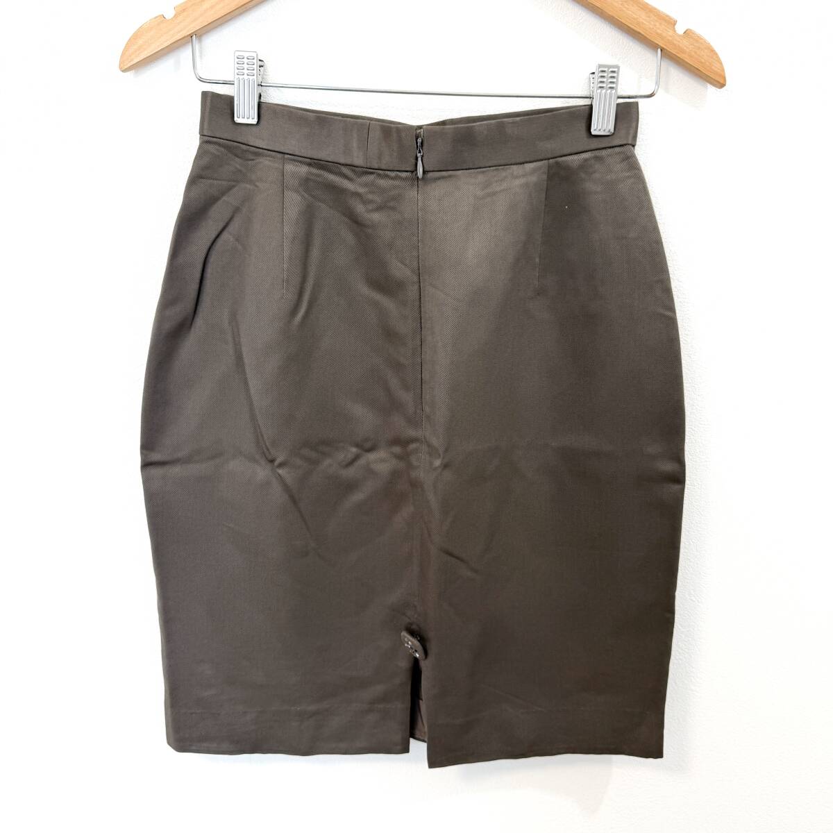 f3058ii 伊太利屋(イタリヤ)サイズ17A2(M位) タイトスカート ストーン スリット ボタン ブラウン系 レディース バックジップ