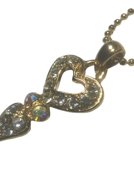 愛を象徴するハート型のキーをモチーフにした、華やかなゴールドネックレス。トップには大小のクリアストーンとオーロラカラーのラインストーンを贅沢にあしらい、光を受けるたびにきらめきを放ちます。中央には小さな花のように並んだストーンがアクセントとなり、可愛らしさを一層引き立てます。