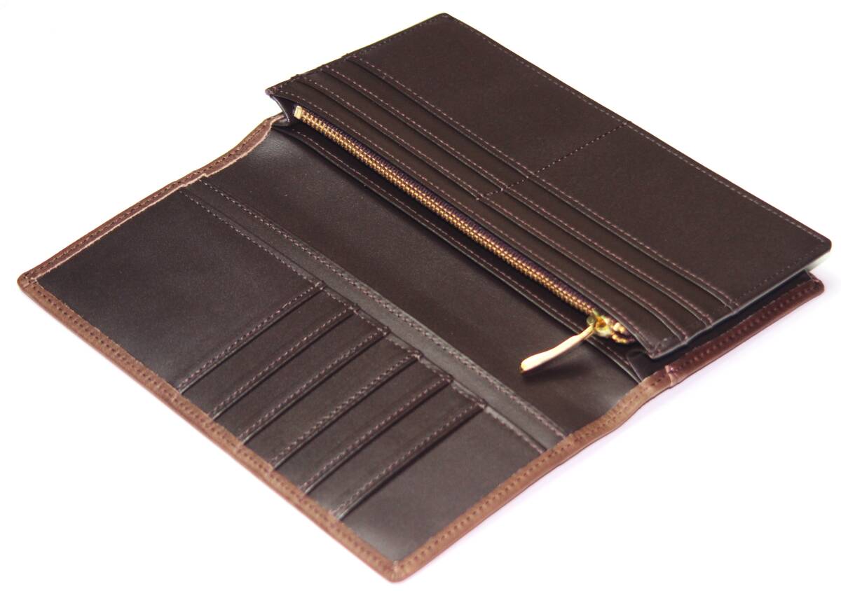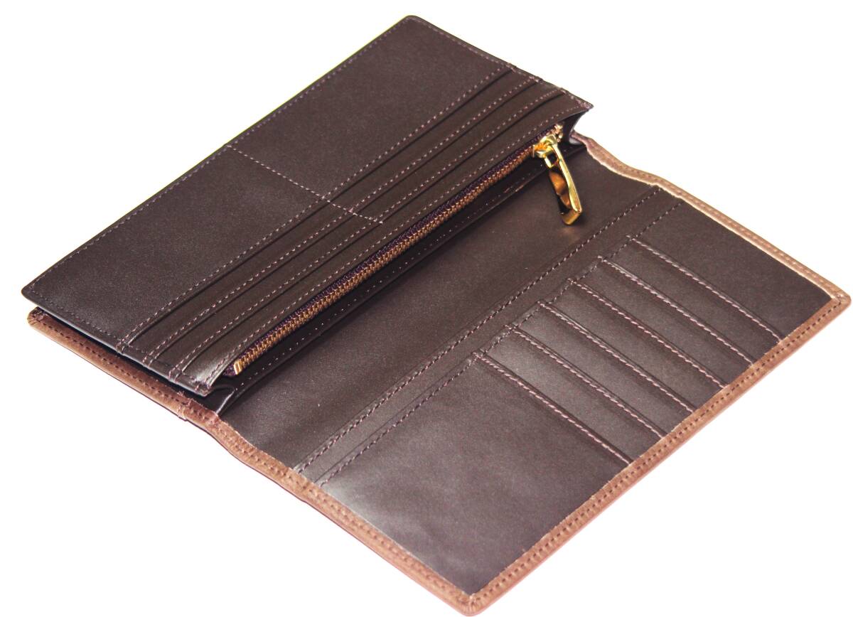 【年末イチオシBIGSALE】【送料込み】【激安】【新品】【税込み】ディアスキン 鹿革 牛革 日本製 総マチ付き ロングウォレット DBR