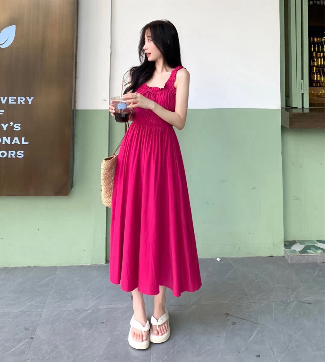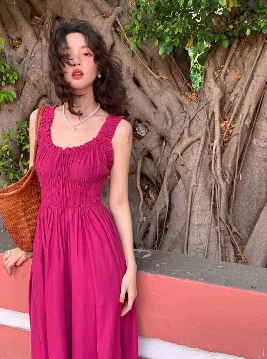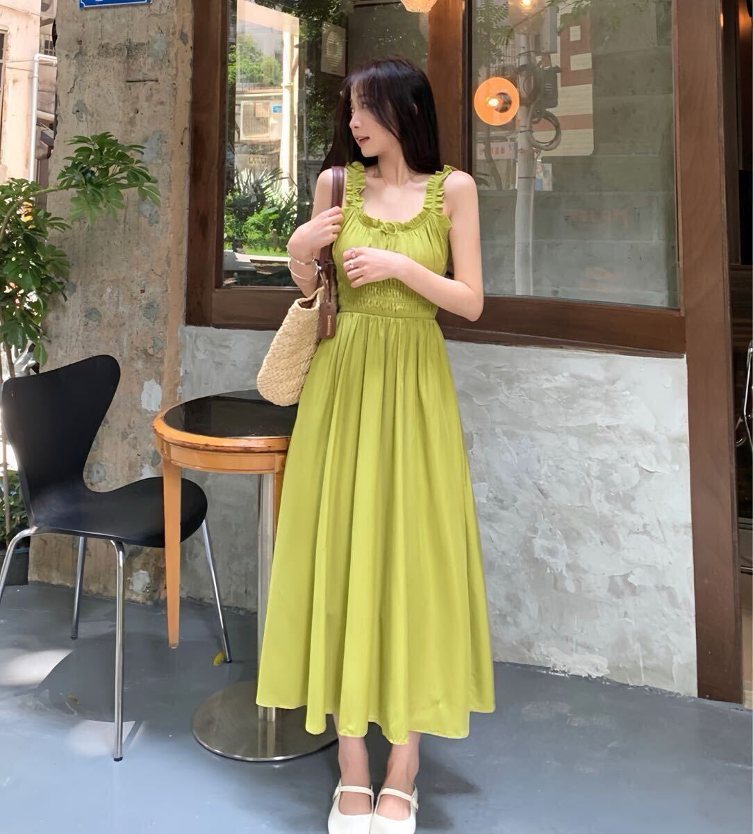 夏にぴったりの軽やかなワンピース。風をまとうような着心地で、涼しく快適に過ごせます。Vネックとキャミソール風のデザインは、首元を美しく見せ、フェイスラインもすっきりと演出。ハイウエスト仕様で脚長効果があり、小柄な方にもバランスよく着こなせます。