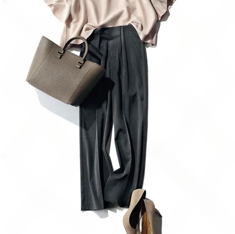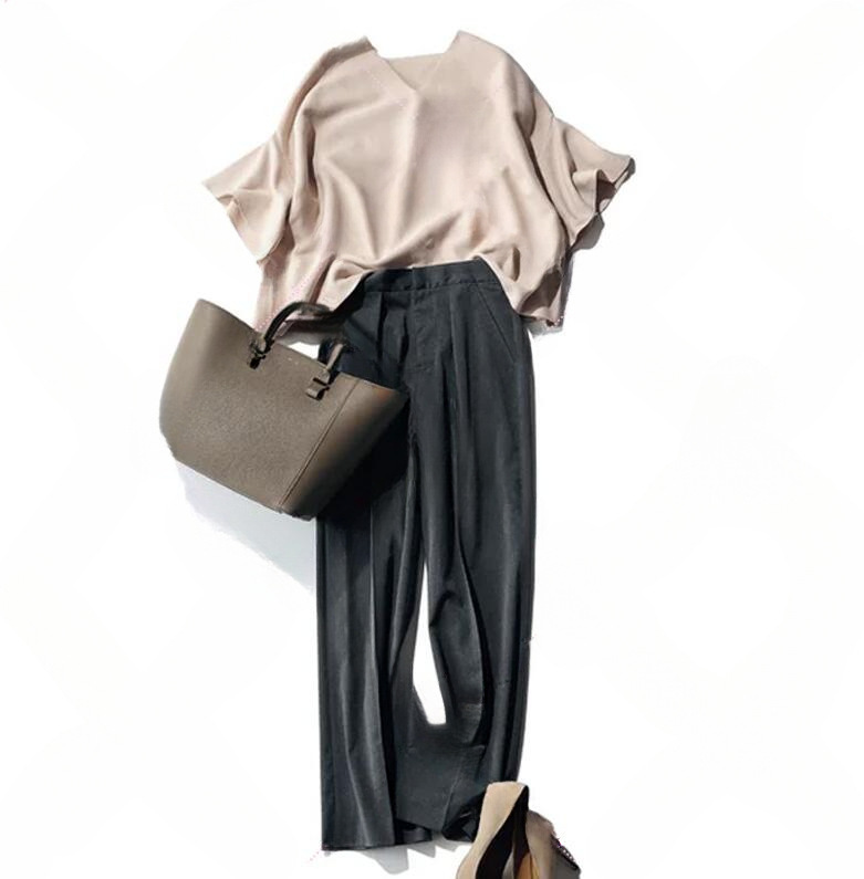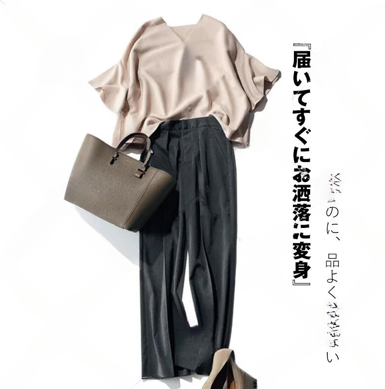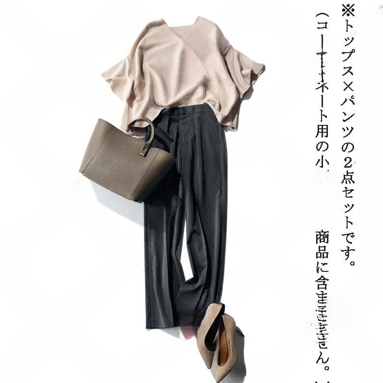 新品人気推薦とろみ素材ベージュのゆったりTOPSとさらっとゆるパンツ黒の2点セット新品Lサイズセットアップ