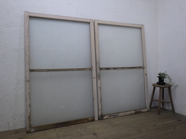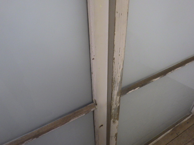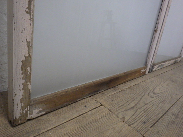 商品情報 | ■商品詳細■ ペンキの剥げたレトロな古い木製ガラス戸、2枚セットです。 シャビーシックな味わいのある品です。 ガラスは、曇りガラスを使用しています。 一般のご家庭はもちろん、レトロな店舗什器にもお勧めです。 経年の傷や欠け、染みや塗装の剥がれ等がありますが、使用には問題ありません。 古い塗装のため、配送中に多少剥がれることがありますので、予めご了承下さい。 ガラスにヒビや割れはありません。 古い物とご理解いただければ幸いです。 ◆別カテゴリーにて同じデザインの品(S991~S999)を出品していますので まとめてご希望の場合は、ストア内検索で上記の管理番号を検索して頂ければと思います。 売買済みの場合はご了承下さい。 ご不明な点などありましたら、質問欄にてお願いします。 ■サイズ■ 全体(最大値) (H 136cm×W 86cm×D 3cm)×2枚 竪框 4,5cm 多少の誤差はご了承下さい。 |