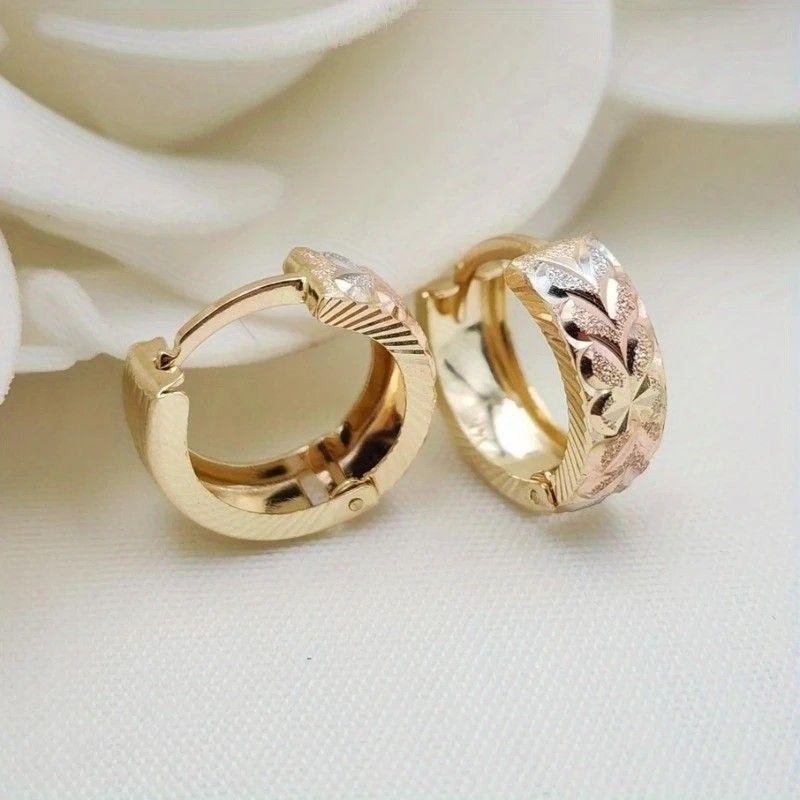 エレガントなゴールドトーンと繊細なリーフ模様が魅力の、ハートフープピアス。
