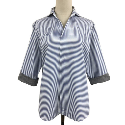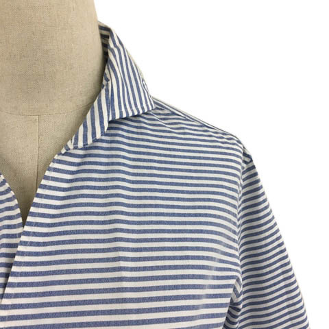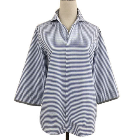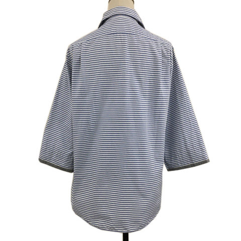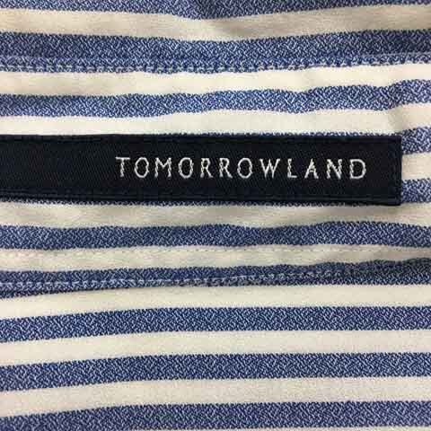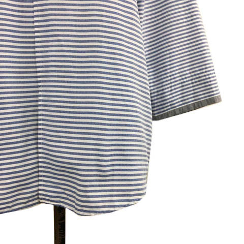 トゥモローランド TOMORROWLAND シャツ ブラウス プルオーバー スキッパー ボーダー スリット 七分袖 M 青 白 ブルー ホワイト レディース