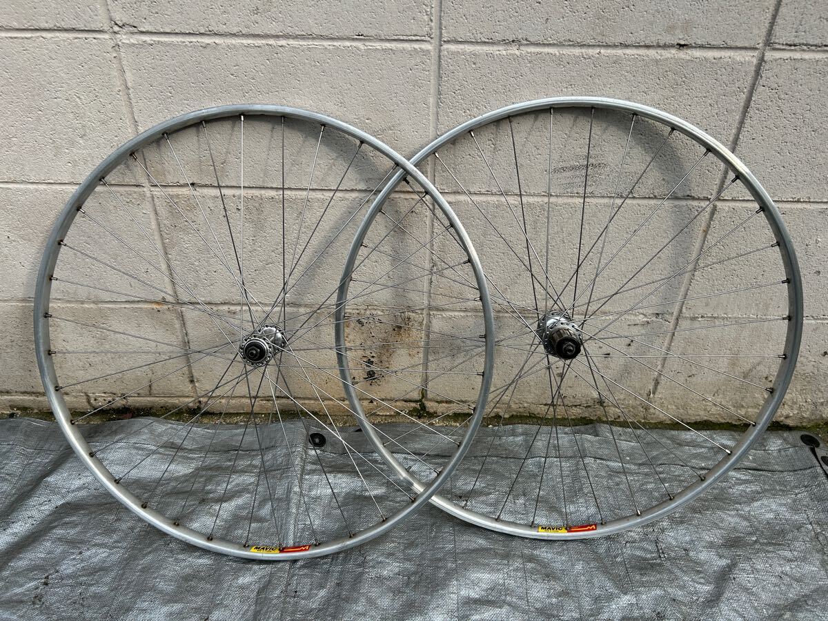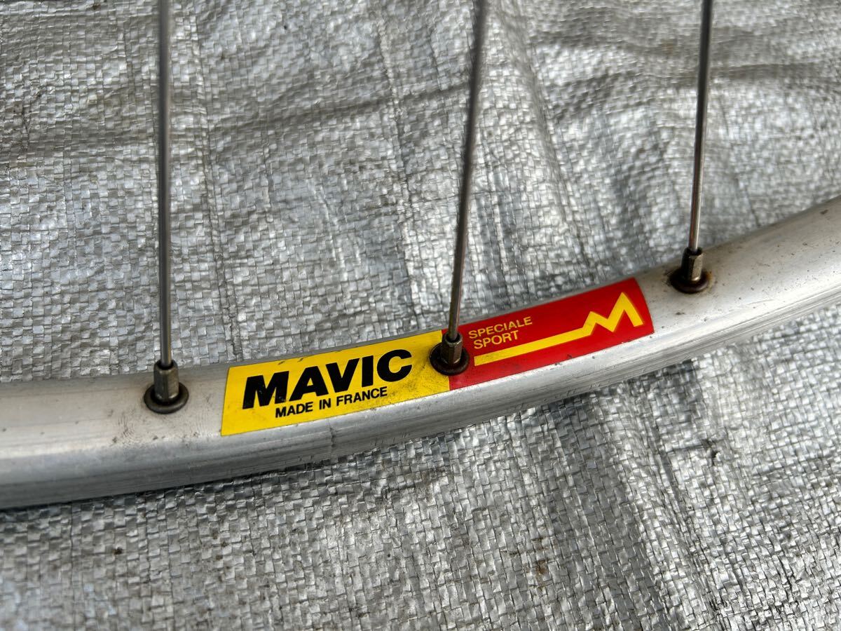 オールドのMAVIC SPECIALE SPORTリム、SHIMANO EXAGE SPORTハブのロードバイク用アルミチューブラーホイール前後セットです。
