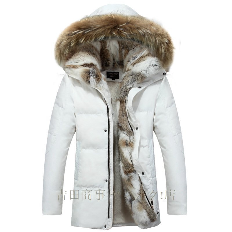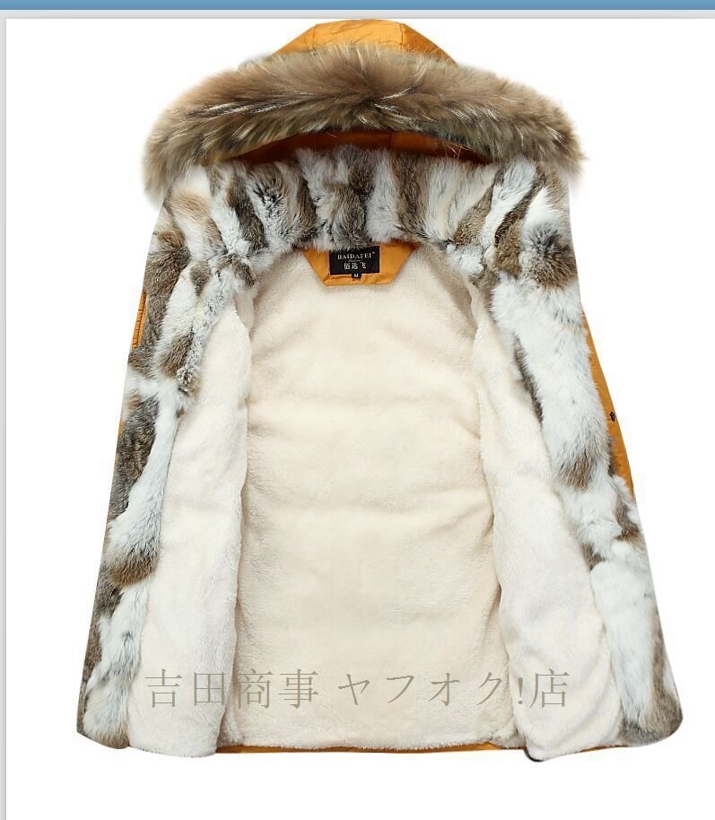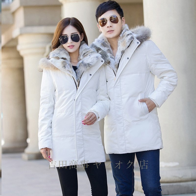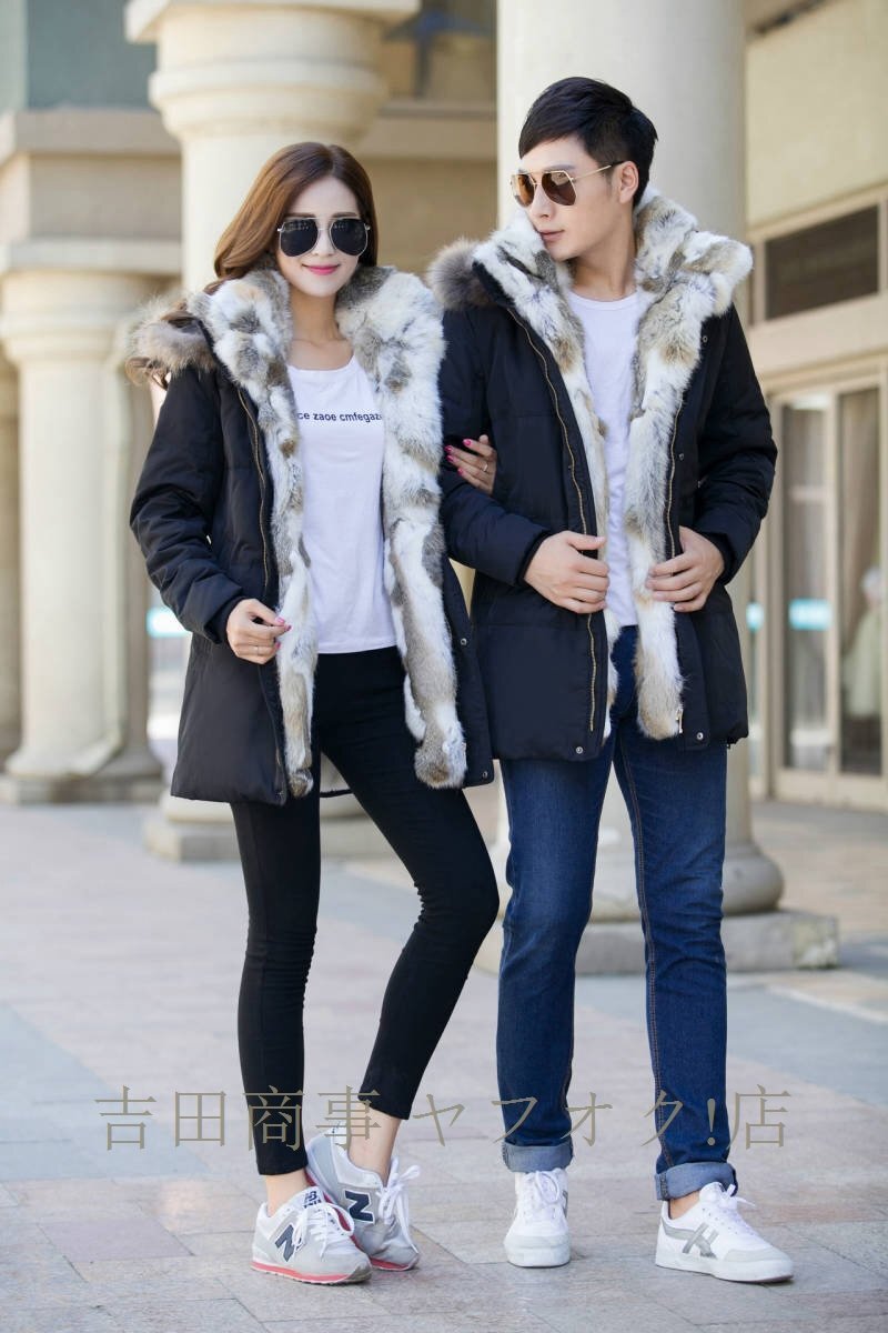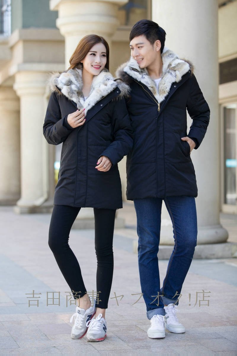 ★新品お色選択可冬ダウンジャケットダウンコート厚手モッズコートリアルファーアンゴラ兎毛カップルロングコートフード取り外す ブラック