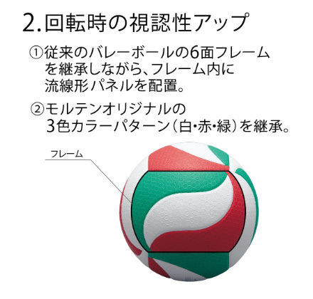 ・従来の6面フレームを継承しながら、フレーム内に流線型パネルを配置する事でボールの回転がさらになめらかに見えるようになり視認性をアップさせます。