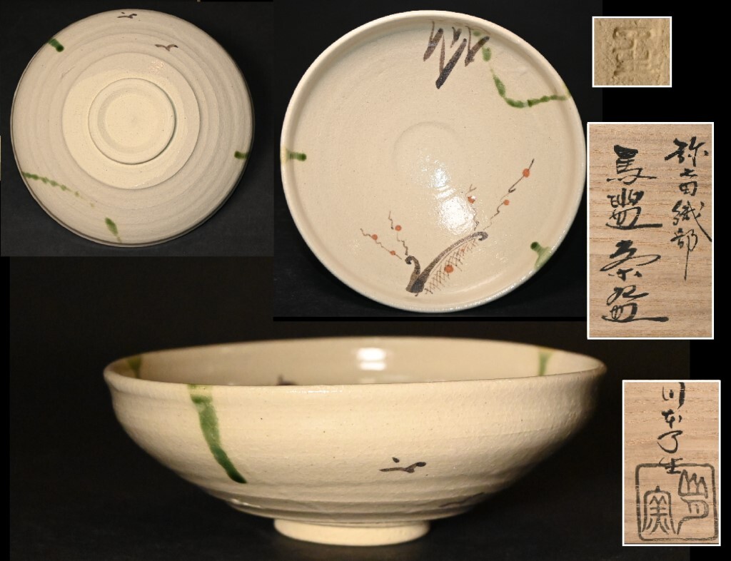 真贋保証■川本了生 作■ 弥七田織部 馬盥茶碗 ばたらい茶碗 共箱 平茶碗 茶道具 茶器 島根県生 山月窯 瑞浪陶芸協会会員 | |||