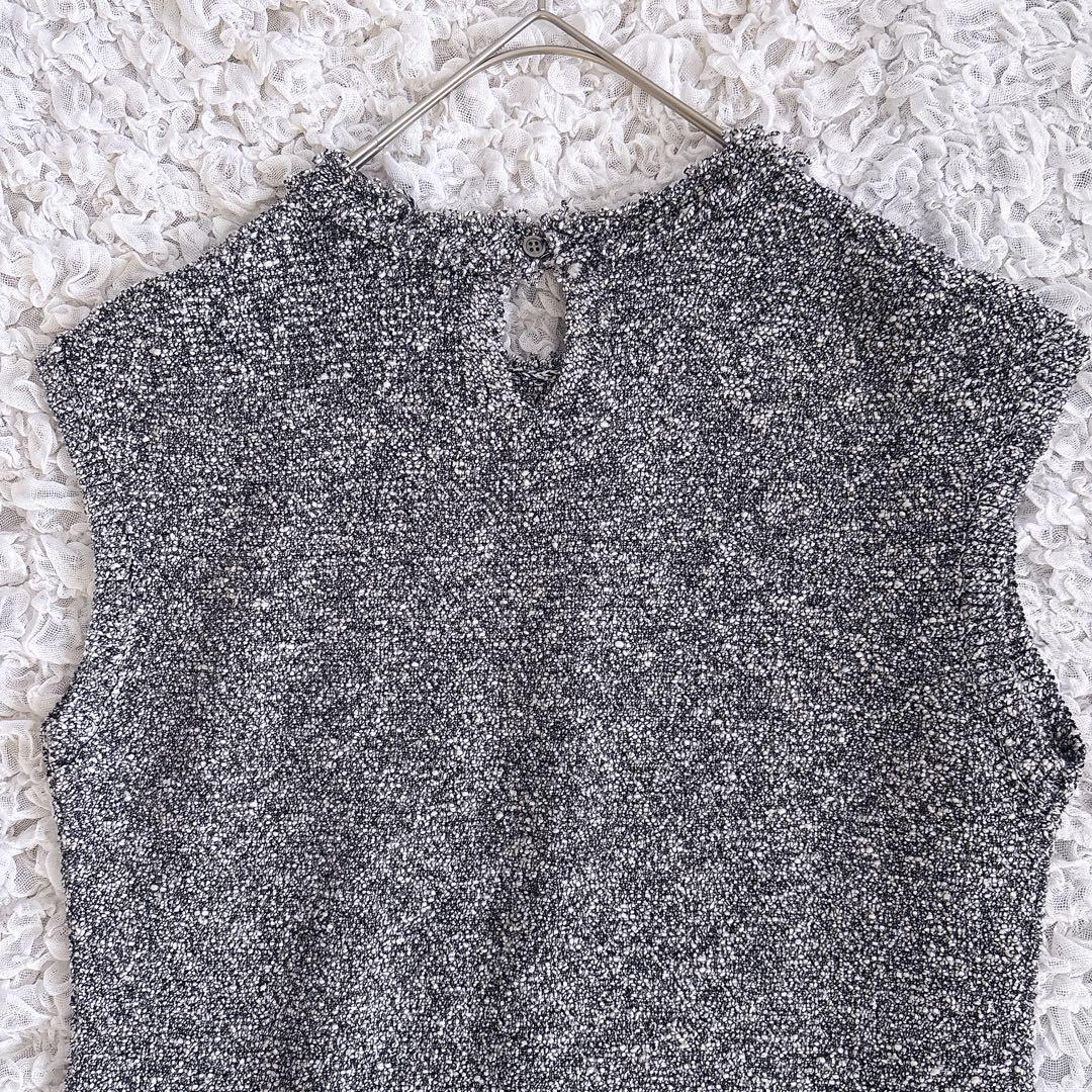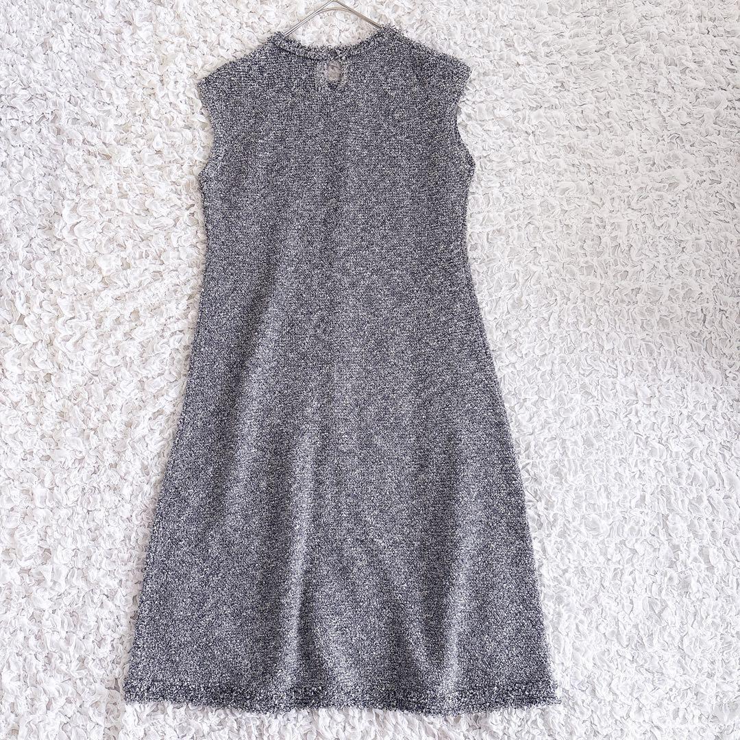 ツイード 高級 上品 きれいめ ミモレ丈 ラメ入り ノースリーブ ブラック系 ストレッチ Aライン フォーマル 通勤 38 Mサイズ 秋冬 春コーデ 大人コーデ