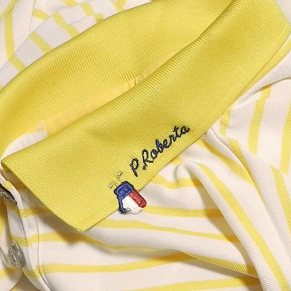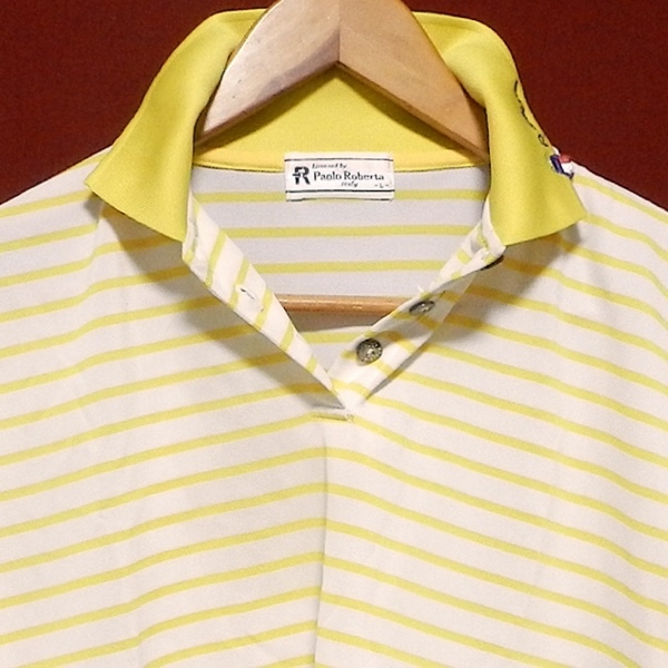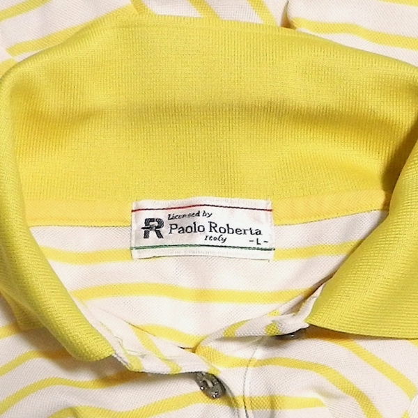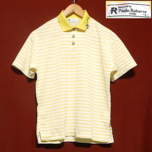 Paolo Roberta パオロロベルタ イタリア 90's ビンテージ ロゴ 半袖 ポロシャツ ゴルフウェア スポーツウェア ボーダー 黄色 / 白 L 美品