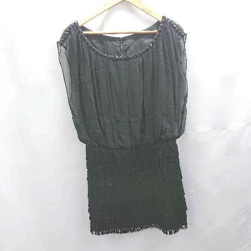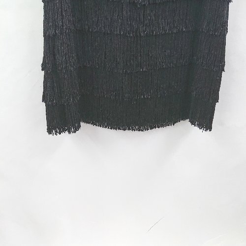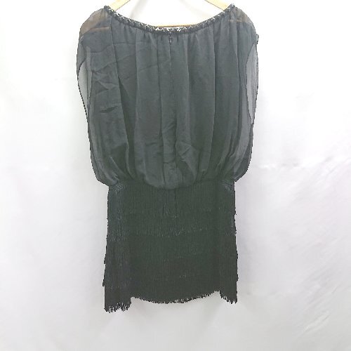 ◇ ⊂ Diagram ダイアグラム ビジュー装飾 シルク100% フリンジ ミニ丈 ワンピース サイズ36 ブラック レディース E