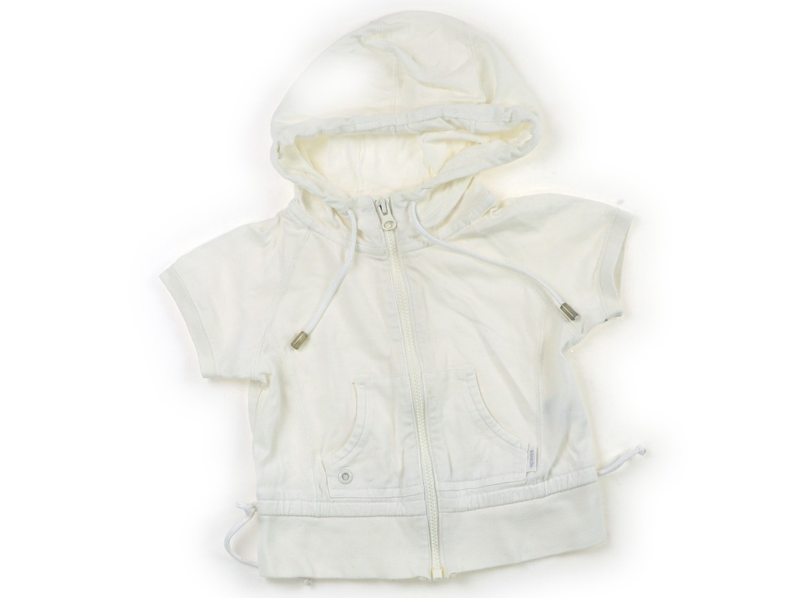 カットソー地です。ファスナー周辺に茶色いシミがライン状にあり毛羽立ちがありますがまだまだお使いいただけそうです。男女兼用でお使いいただけそうです。