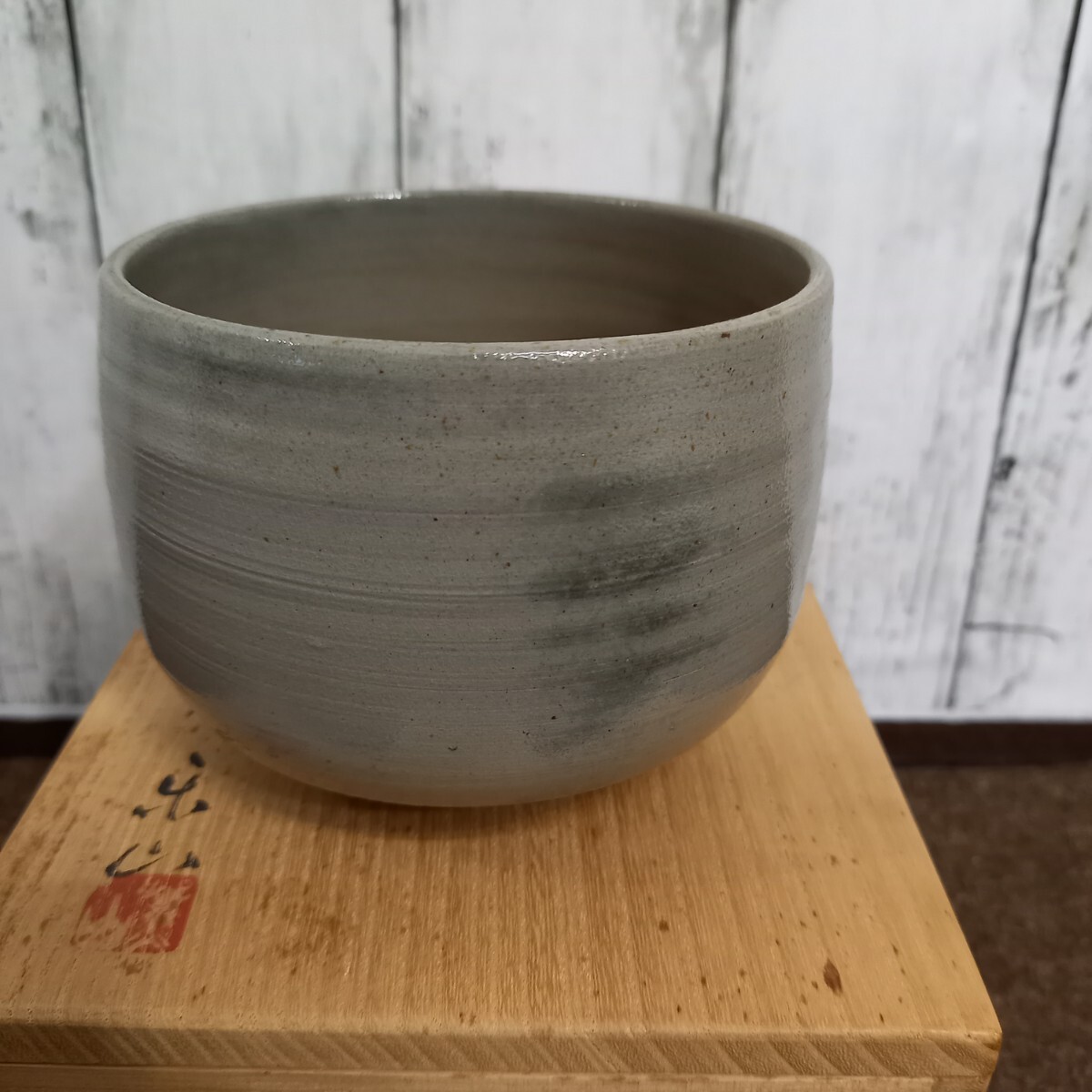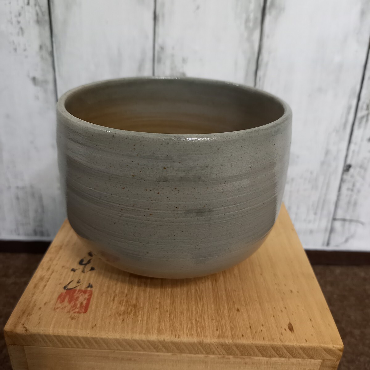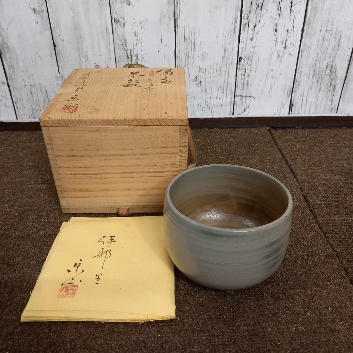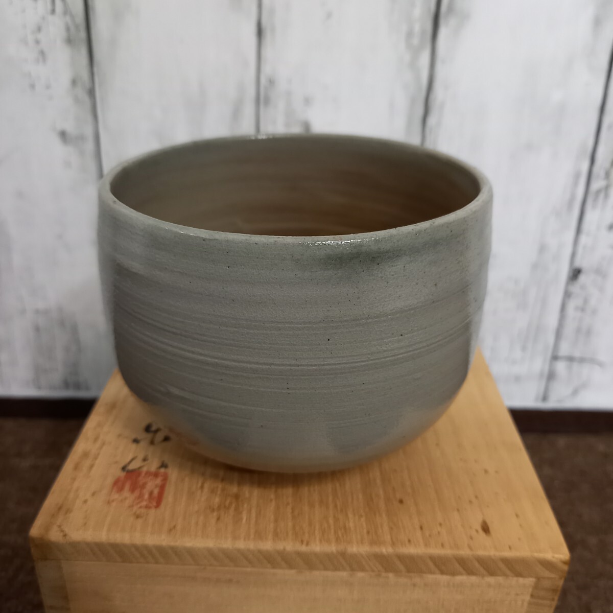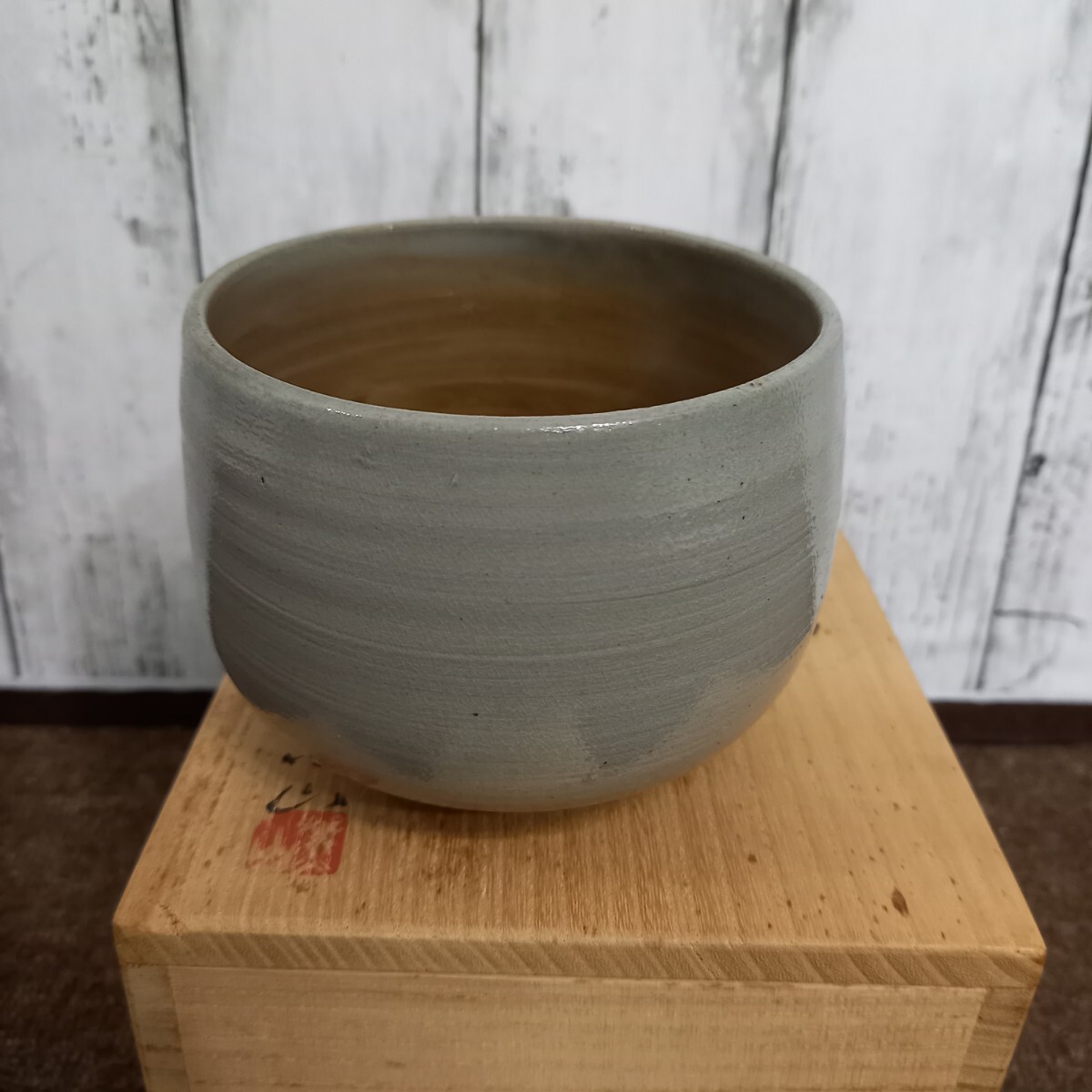 こちらは、無形文化財 藤原楽山 作 青備前 茶碗 共箱 茶道具