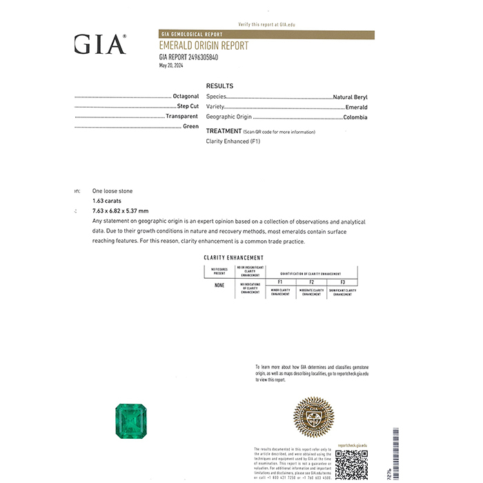 石目 | コロンビア産エメラルド 1.63ct (F1) ダイヤモンド 0.35ct |